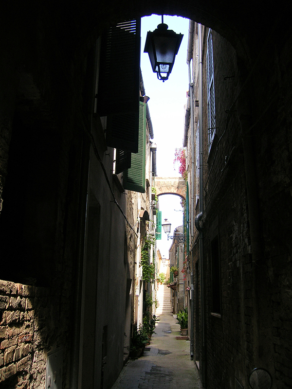 Le origini di Città Sant'Angelo sono incerte ed hanno costituito sempre motivo di discussioni sia fra gli storici più celebrati che fra quelli locali. L'unico dato certo, confermato da numerosi ritrovamenti di testimonianze di piccoli aggregati sociali, è quello secondo cui essa è un antico centro vestino. E' storicamente accertato che essa fu distrutta nel 1239 da Boemondo Pissono, giustiziere di Federico II, perché troppo fedele alla nemica Chiesa. Successivamente lo stesso Imperatore concesse ai superstiti la facoltà di ricostruire l'abitato in tre casali. Lo sviluppo urbano avvenne praticamente in tre momenti: La ricostruzione, iniziata dopo il 1240, nel nucleo fortificato a semicerchio, delimitato attualmente da Strada Castello, Strada Minerva, Via del Ghetto e Via del Grottone; La venuta degli ordini monastici nella prima metà del XIV secolo, che interessò l'ampliamento delle chiese esistenti e la realizzazione di monasteri; La ricostruzione vera e propria con i palazzi gentilizi della borghesia agraria nel XVII secolo. Per questo motivo l'attuale impianto "a fuso" non costituisce un carattere originale della tipologia urbana di Città Sant'Angelo, perché esso si è costituito man mano grazie a successive espansioni ed aggregazioni dei nuclei abitativi prevalenti, che divennero un forte coagulo urbanistico determinando la crescita del centro storico così come è attualmente composto.