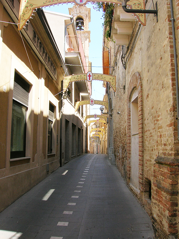 L'assetto urbanistico della città antica risale ai secoli XIII e XIV, quando l'abitato divenne comune demaniale. Il centro attuale, posto alla sommità del colle, con la rinascimentale piazza Roma e le sue vie medievali, si sviluppa su quattro assi longitudinali e paralleli. Su queste si intersecano piccole e ripide traverse dette "rue", un tempo destinate allo scolo delle acque meteoriche e domestiche. Alle estremità degli assi troviamo piazza Roma e la chiesa di Sant'Urbano, centri di aggregazione sociale e culturale, un tempo come oggi. Piazza Roma fu scelta già dall'allora Padre Camillo de Lellis, per fondare la sua Comunità, nel cuore della vita sociale del paese.