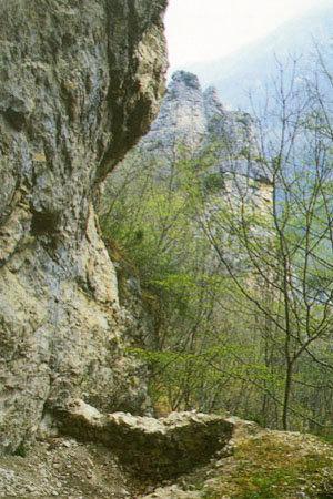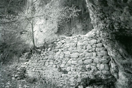 Si trova nella parte centrale della valle, poco più a monte di un'ampia radura ove il Salinello, per un breve tratto, si divide in due rami. Si tratta di un ampio riparo, di circa 15 metri di fronte e di notevole altezza, in cui rimangono discreti resti delle mura dell'Eremo. Il primo tratto di mura si appoggia alla parete di destra, mentre il secondo tratto, più interno al riparo, occupa il lato sinistro dell'androne. Si nota, inoltre, una traccia di muro perpendicolare ai suddetti tratti che realizzava la completa chiusura del riparo e dove, probabilmente, si apriva l'ingresso. Gli incavi realizzati sulla roccia sono pochissimi e da ciò è possibile arguire che la copertura degli ambienti venne realizzata in maniera tradizionale senza appoggi alla parete rocciosa. Altre mura sono visibili poco più a valle lungo il declivio ma, considerata la ripidità del pendio, possono essere considerate delle semplici mura per contenere il terreno o per realizzare degli orti.