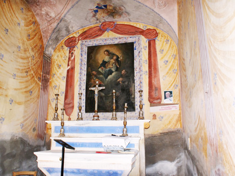 Chiesetta votiva fondata dalla famiglia Cozzi, successivamente appartenuta alla famiglia Sistilli (oggi è appunto nota come Cappella Sistilli) e poi affidata alle cure dei fedeli del piccolo borgo. Presenta copertura a capanna e la facciata ha coronamento mistilineo, con un piccolo campanile a vela sulla sommità che sorregge una campana. Sull’architrave piano del portale è incisa la data 1687. L’interno è costituito da un’unica piccola aula con drappeggi e decori dipinti du pareti e soffitto. Dietro l’altare un affresco incorniciato raffigura una Madonna con Bambino adorata da un Papa e da un Santo in abito talare.