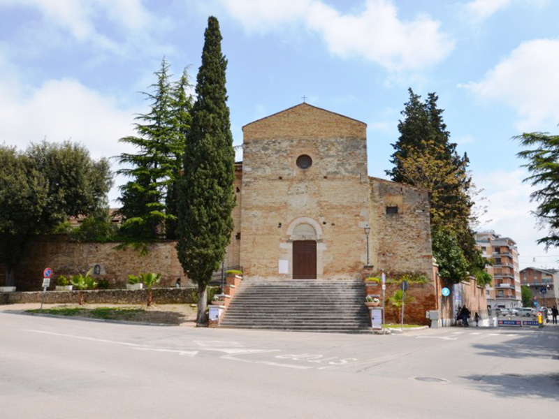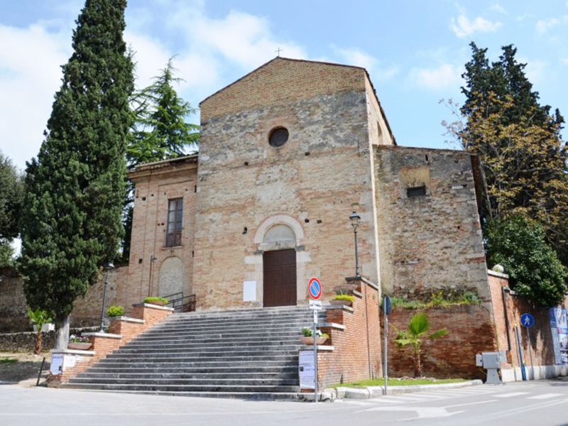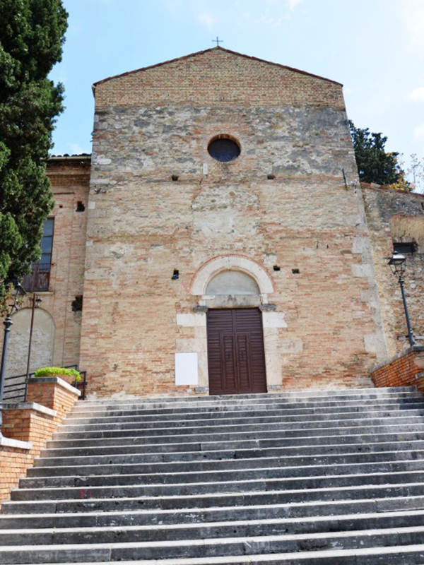 Costruito, secondo lo storico Francesco Savini, prima del 1150 dai Padri Benedettini, il complesso fu affidato per un breve periodo ai Gesuiti, e nel 1575 alla cura dei Padri Cappuccini. La chiesa è un austero edificio in laterizio con una spoglia facciata su cui si aprono un semplice portale di conci squadrati in pietra ad architrave piano sormontato da lunetta incorniciata in pietra e, in alto, una finestra rotonda. Ad essa si accede tramite una sobria scalinata che giunge fino al sagrato. In corrispondenza della parete posteriore si alza un piccolo campanile a vela che ospita una campana. Dopo la soppressione i locali del convento dal 1878 vennero destinati all'Orfanotrofio San Carlo, poi Regina Margherita, curato dalle Suore della Carità. Quando queste andarono via da Teramo essi sono stati in parte abbandonati e in parte utilizzati come scuola privata e come asilo. Nel 1762 la chiesa fu arricchita di un bellissimo altare ligneo, opera del frate cappuccino teramano Giovanni Palombieri. L'interno è a navata unica con sulla destra una navatella laterale divisa in piccole cappelle e locali di sagrestia.