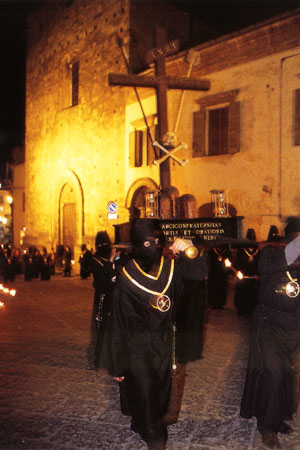 A Lanciano l'Arciconfraternita della Morte e Orazione, la cui funzione originaria ed istituzionale, in passato, era quella di provvedere alla sepoltura dei morti, specialmente in caso di epidemie e calamità, ha due appuntamenti da rispettare. La sera del giovedì santo, dà vita ad una processione notturna che percorre le strade del centro storico e sosta nelle chiese in cui sono stati allestiti i sepolcri eucaristici, secondo una diffusa tradizione cattolica. Il corteo è aperto dalle insegne della Confraternita e dalla pannarola, un enorme stendardo nero la cui alta cuspide spesso sfiora i balconi che segnano la notte con il fioco chiarore dei lumi. Seguono i confratelli che avanzano incappucciati e con il sacco nero della penitenza, sul quale risplendono i decori e il collare d'oro che completano l'abito di parata. Il passo lento del corteo è scandito dal suono lugubre e persistente della raganella, mentre, in lontananza, le note della banda riempie l'aria notturna di arie patetiche e solenni. Anche la processione del Venerdì santo è caratterizzata dal suono della banda che esegue marce e oratori composti, nei secoli scorsi, su commissione della Cappella dell'Arciconfraternita e che ribadiscono la profonda cultura musicale del centro frentano. Ma la figura più importante della commemorazione è il Cireneo. Per tradizione, un membro del sodalizio, la cui identità, celata dal nero cappuccio di ordinanza, è nota solo al priore, percorre le vie a piedi scalzi e sotto il peso di una grande croce di legno che trascina per tutta la durata del corteo.