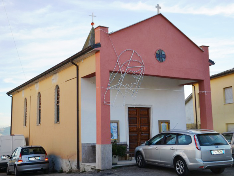 Venne ultimata nel 1967 su un terreno donato da una famiglia della vicina Monticelli, grazie al fattivo contributo economico dei fedeli, utilizzando anche materiali di risulta appartenenti ad un casolare diruto di proprietà della Curia teramana. Ha copertura a capanna ed il semplice portale d’ingresso è preceduto da un portico. Alla parete posteriore è incastonata una torre campanaria a base quadrangolare, che ospita due campane.