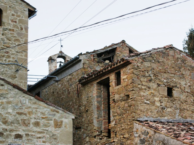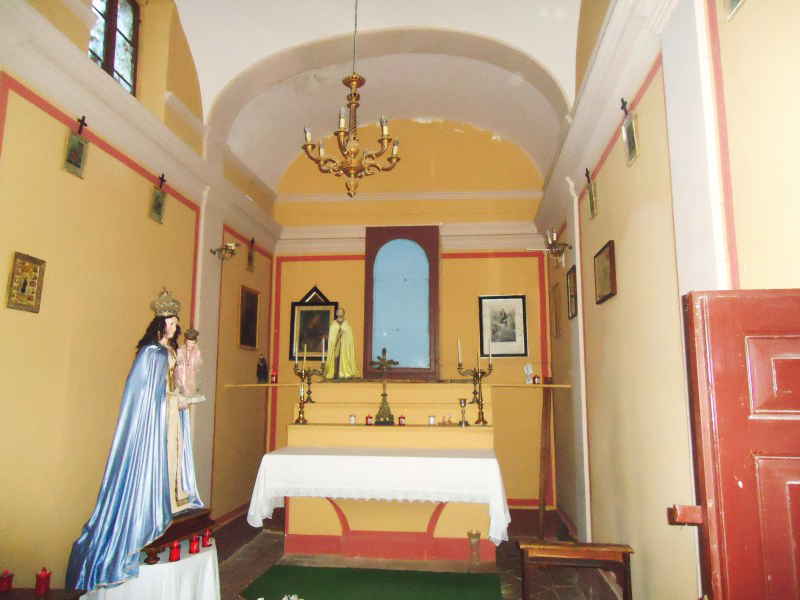 Ha copertura a capanna e da lontano si individua il suo campaniletto a vela che sorregge una campana. Un semplice portale incorniciato in laterizio con arco a tutto sesto posto poco prima di un passaggio voltato consente l’accesso alla chiesa lateralmente. L’interno è costituito da un’unica piccola aula, in fondo alla quale trova posto, sopraelevato di un gradino dal resto, l’altare; una nicchia al di sopra di esso è riservata alla statua devozionale della Madonna del Rosario, che viene concessa all’adorazione dei fedeli in prossimità della festività a lei dedicata.