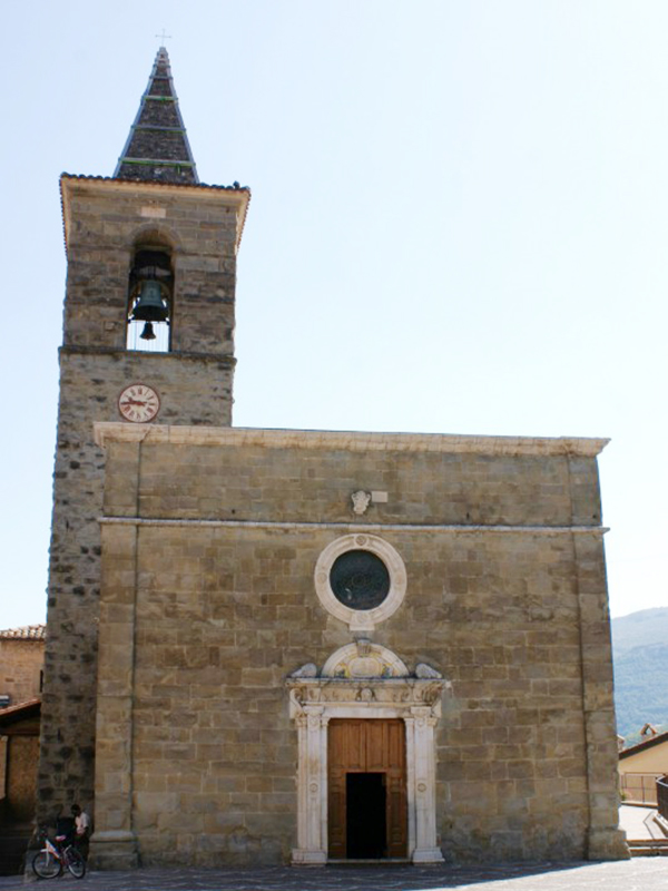 La parte posteriore, quella dove oggi è posizionato l’Altare maggiore, risale al Cinquecento; forse si tratta del rifacimento di un altro edificio sorto nel 1335 sui resti di un antico tempio pagano. La facciata, in blocchi di pietra arenaria, è a coronamento orizzontale con un grande finestrone rotondo al di sopra del portale. Questo è in pietra e nella lunetta che lo sormonta ha maioliche ottocentesche che raffigurano i Santi Pietro e Paolo; tra le due figure campeggia in cartiglio la scritta “Claviger hoc fanum tu protege, tu auspice doctor aedis, et hac vestri iure fruatur ope nam vobis, merito quod corde dicavit asylum sic superum auxilio, sustulit aere suo. A.D. 1693” (O tu che possiedi le chiavi [S.Pietro] proteggi questo tempio e tu dottore del tempio [S.Paolo] favoriscilo, e in questo modo per vostro diritto possa usufruire di questa opera chi meritoriamente dedicò a voi asilo e, con l’aiuto dei superi, lo sostenne con le proprie sostanze). Al di sopra del grande oculo è lo stemma di Fano Adriano risalente al 1584, costituito da un castello a tre torri merlate con quella centrale più alta. La copertura è a capanna ed a sinistra della chiesa si appoggia alla parete posteriore un imponente campanile a base quadrata realizzato nel 1658. L’interno ha tre navate, divise da due archi a tutto sesto per ogni lato, di cui quella centrale, che termina nel presbiterio privo di abside, ha un bel soffitto ligneo a cassettoni datato 1608. L’altare maggiore è in stile barocco con colonne tortili in legno scolpito, intagliato e dipinto in oro in cui, ai lati del tabernacolo, trovano posto le statue di S.Pietro e S.Paolo. Al di sotto degli archi sono numerosi affreschi con motivi decorativi e figure di santi, datati 1592, mentre nella cappella di sinistra i pochi affreschi restanti sono datati 1556. Oltre all’altare maggiore sono nella chiesa altri tre altari, tutti di fine Seicento, di cui uno, nettamente più piccolo, è collocato in fondo alla navata di destra, mentre gli altri due trovano posto nei due piccoli bracci del transetto. Tutti sono barocchi con colonne tortili in legno dipinto in oro, realizzati dai Maestri intagliatori Carlo Riccione (1630-?) e suo fratello Giuseppe di Fano Adriano. Nella chiesa si conservano un’acquasantiera datata 1636, una reliquia di S.Valentino, un organo realizzato nel 1756 da Adriano Fedri (1719-1797) di Atri e restaurato sul finire degli anni Settanta del secolo scorso, nonché un bacino in pietra del 1569 appartenuto ad una fontana del paese detta “Fonte della Cannalecchia” recante lo stemma di Fano Adriano.