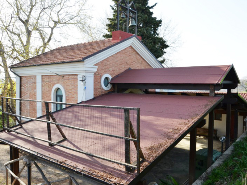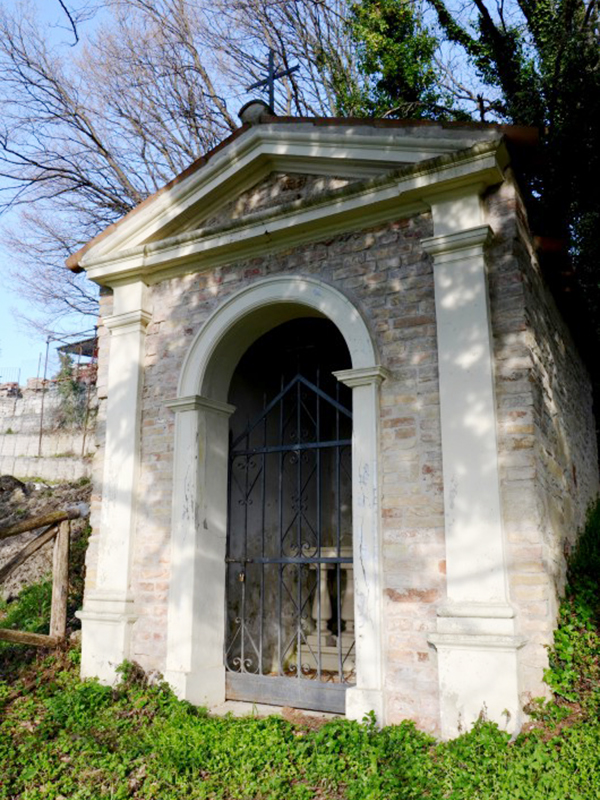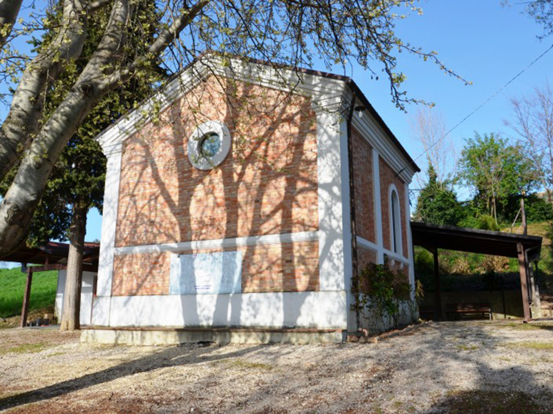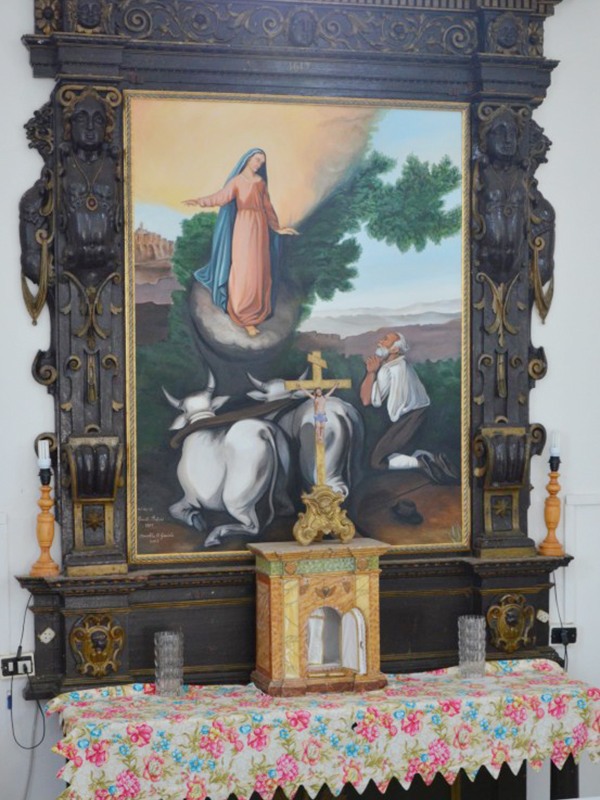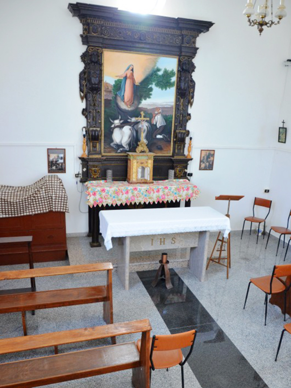 L’edificio originario risale al 1480, eretto in segno di devozione nei confronti della Madonna, detta poi Madonna dell’Alno, che il 18 maggio di quell’anno si sarebbe manifestata luminosa sopra un vicino ontano (alno) al contadino Floro mentre questi era intento a lavorare nei campi. Venne poi ricostruita nel 1937 e successivamente, alla fine degli anni Cinquanta del secolo scorso, ristrutturata. Il semplice edificio ha copertura a capanna e sulla sua facciata anteriore si apre un portale ad architrave piano sormontato da timpano. Ai lati del portale sono due strette finestre con arco a tutto sesto sormontate ciascuna da una finestra rotonda (oculo). Sulla sommità del tetto, in corrispondenza della facciata, si alza un campanile a vela in struttura metallica per due piccole campane. Nel 2009 alla costruzione è stata aggiunta una voluminosa ed ingombrante tettoia in legno che, pur consentendo la fruizione degli spazi circostanti, ha completamente stravolto la semplicità, la naturalezza e la misticità del luogo. L’interno, costituito da un’unica piccola aula, è abbellito da un altare in legno intagliato in cui è incastonato un dipinto che raffigura la scena dell’apparizione della Madonna al contadino Floro. Dal luogo in cui sorge la chiesetta è visibile, sul colle, la chiesa parrocchiale intitolata alla Madonna dell'Alno, a cui è idealmente congiunta da un percorso pedonale scandito da due piccole cappelle, erette nei luoghi della seconda e terza apparizione della Madonna. All’interno di ciascuna di esse è un altarino con la riproduzione del dipinto raffigurante la sacra apparizione.
