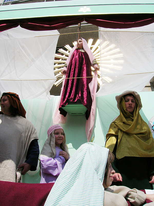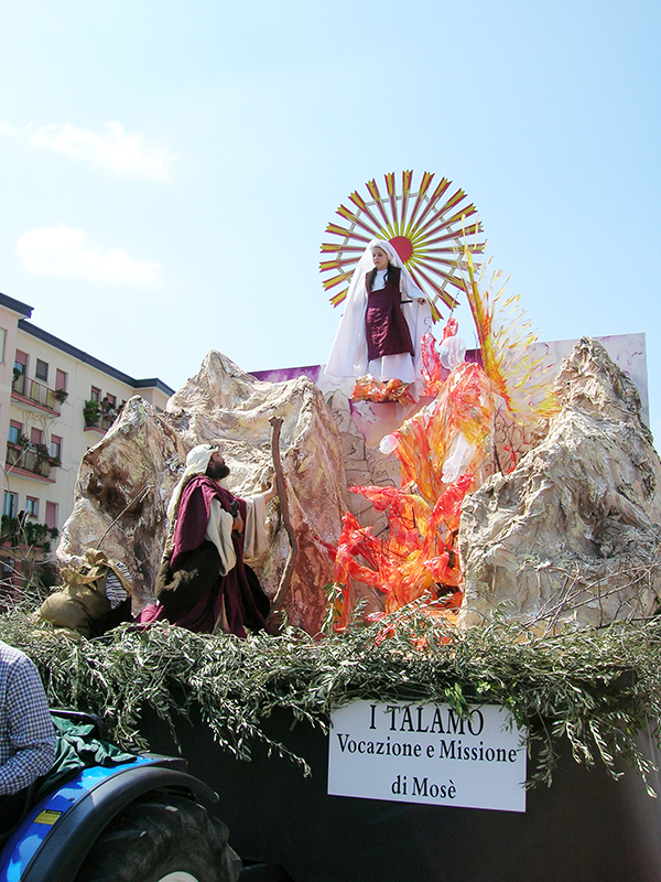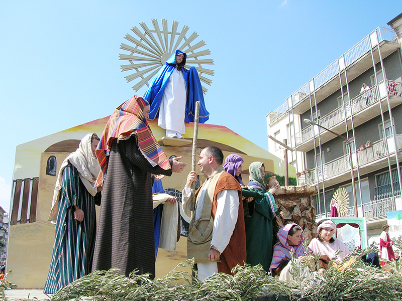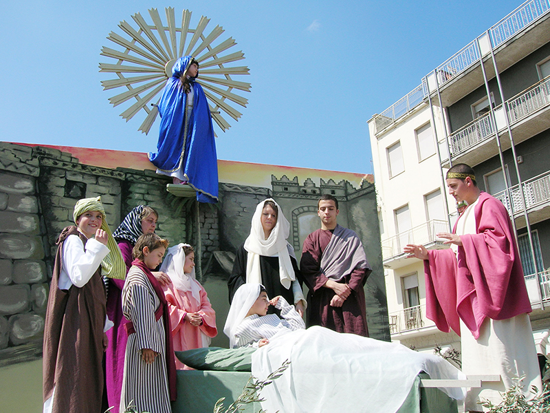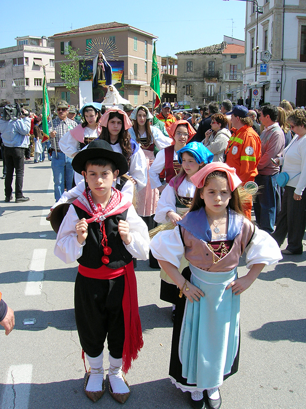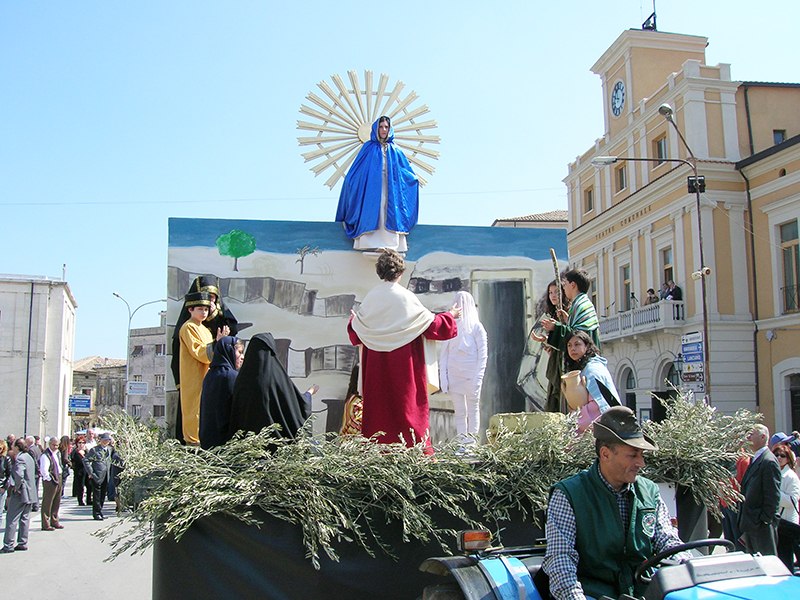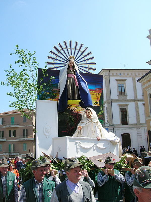 Nella mattina del lunedì di Pasqua l'intero paese prende parte alla suggestiva rappresentazione, di tradizione secolare, in onore della Madonna Nera o del Rifugio, dei Talami, sette quadri biblici inscenati da giovani figuranti su palchi semoventi, trainati una volta dai buoi ed oggi da trattori, sulla sommità di ognuno dei quali è sospesa una bambina che impersona la Madonna. Una volta la festa era preceduta da una veglia di preghiera che le donne passavano all'interno della chiesa di fronte all'immagine della Madonna Nera, a cui la devozione popolare attribuiva eventi miracolosi, e la sfilata si concludeva con il carro delle primizie, colmo di covoni di grano messi da parte in occasione della mietitura dell'anno precedente. La rappresentazione viene ripetuta nella serata del 15 agosto.