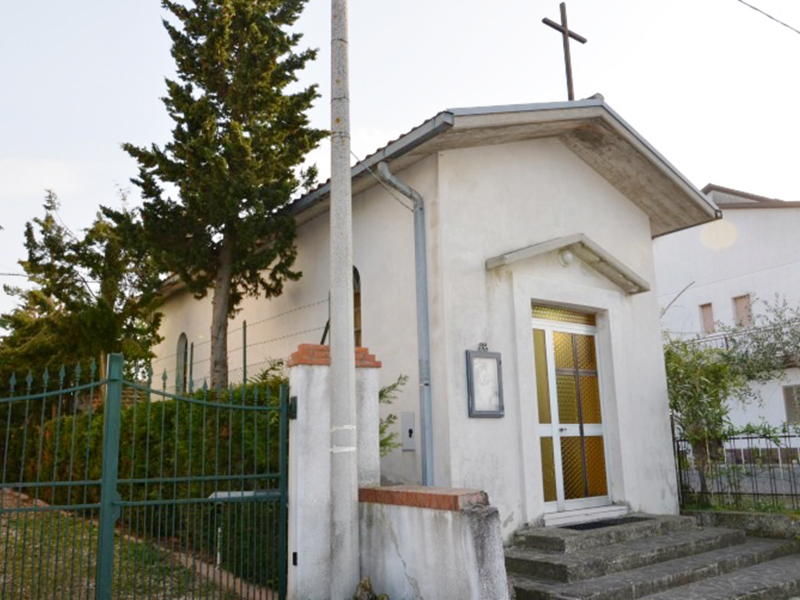 Poco più che una Cappella, venne costruita all’inizio del secolo scorso e nel 1992 sono stati effettuati lavori di ristrutturazione. Ha copertura a capanna ed il semplice portale, cui si arriva salendo tre gradini, è ad architrave piano. Sulle pareti laterali si aprono degli stretti finestroni con arco a tutto sesto. Dalla parte posteriore del tetto si alza un piccolo campanile a vela in cui trova posto una campana. L’interno è costituito da una piccola aula che termina in un’abside.