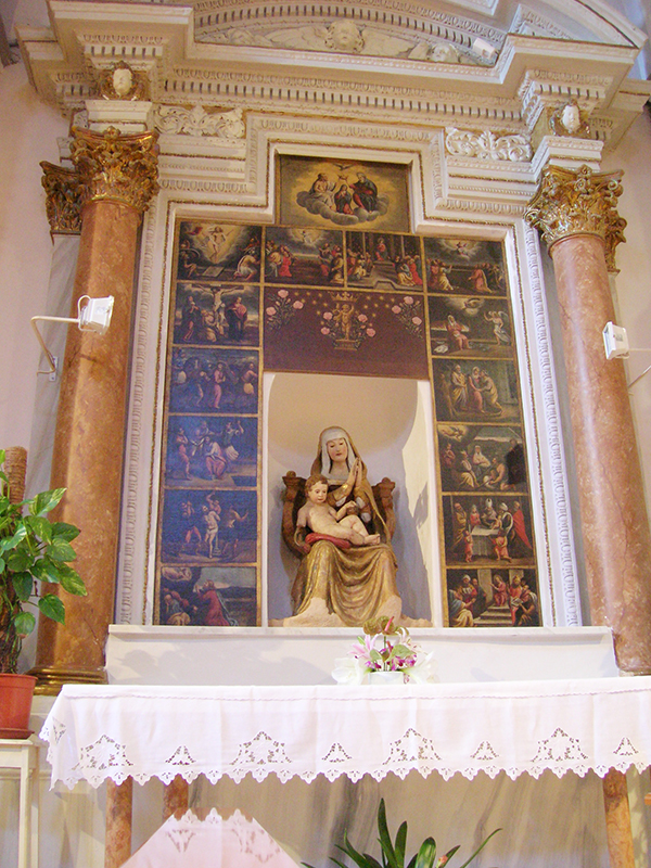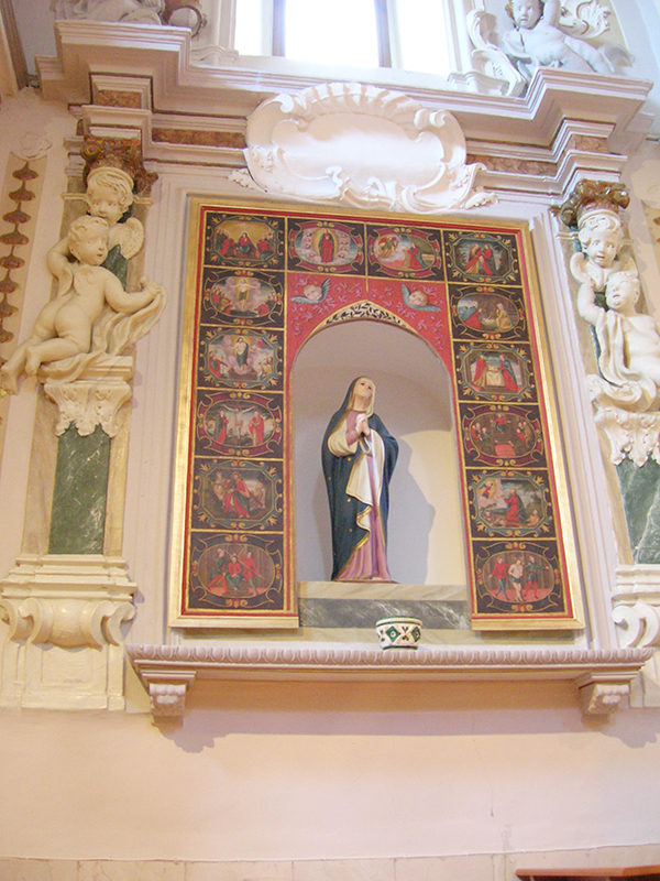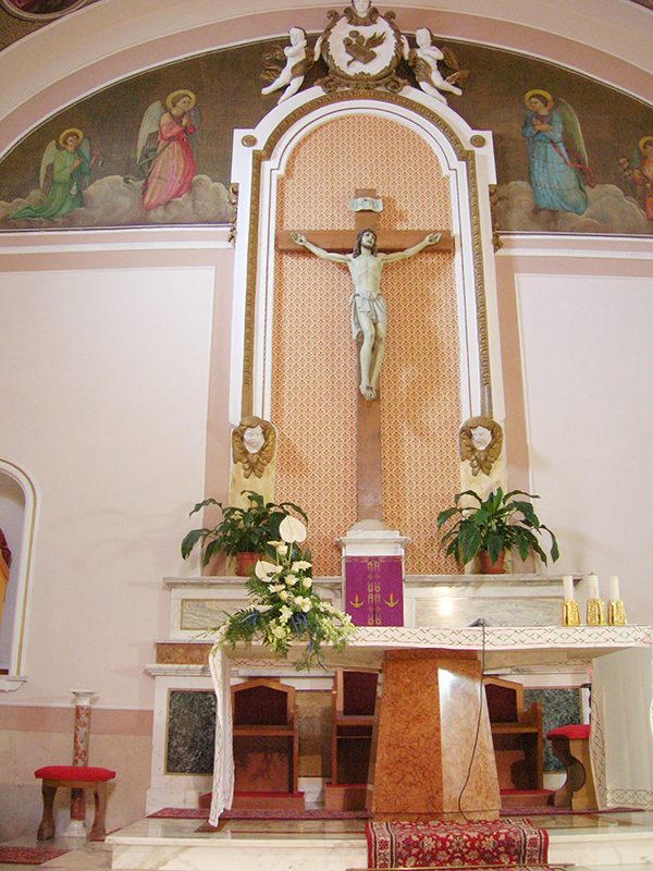 Il pulpito, fra le cose notevoli esistenti nella Chiesa, è del 1166, indizione XIV, come è detto nell'iscrizione, esistente al suo lato sinistro, e fu fatto costruire, dall'Abate Rainaldus, quello stesso che era stato a Moscufo, e forse dallo stesso Artefice, cioè Magister Nicodemus, nome che è presente nell'ambone di Moscufo, ma che manca in quello di Cugnoli, probabilmente perché è andata perduta la parte che portava il nome dell'Artefice. Alcuni motivi ornamentali sono dall'Heiberg interpretati come semplici motivi decorativi dell'artista, che ricalca il gusto dei Normanni, seguito nell'Italia Meridionale, sia pure con qualche riflesso bizantino e arabo, e non ammette che un significato simbolico sia in esso racchiuso, cioè dell'uomo nella selva del peccato, che cerca di districarsi e difendersi, come è ritenuto da altri Autori. Oltre ai simboli dei quattro evangelisti (il toro, il Icone, l'aquila e l'angelo) si notano l'albero della vita, Giona nelle fauci del mostro marino, Sansone col Icone, Davide con l'orso, un Santo avvolto da lunghi capelli, forse S. Onofrio, ed alcuni momenti della Santa Messa, che con molta probabilità riflettono l'immagine di S. Stefano e di S. Lorenzo. Come si vede è un'arte sorta non solo per una decorazione o una pura ragione estetica, ma, come dice il Balzano, corrisponde ad un bisogno dello spirito, essendo tutta ispirata ad un particolare sentimento religioso.