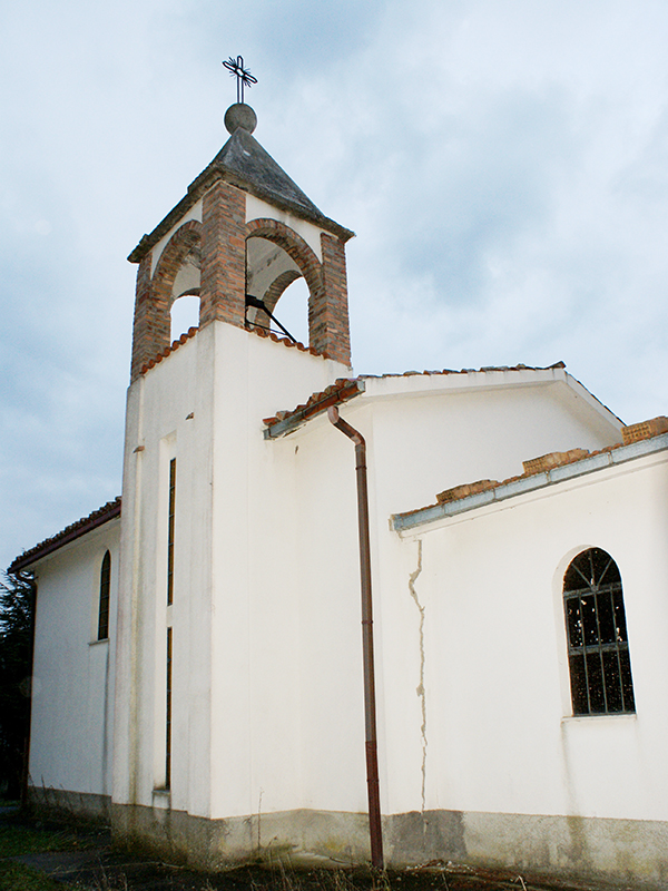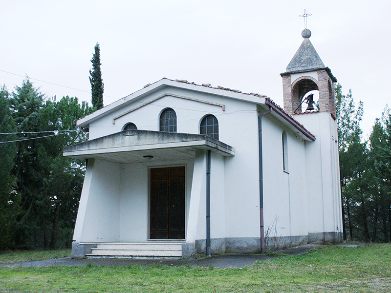 La costruzione risale alla fine degli anni settanta del secolo scorso ed è stata realizzata nel sito in cui un tempo esisteva un’antica chiesetta medievale, S. Maria ad Campillium. Quando questa andò in rovina e crollò, ne fu costruita una nuova più a valle, ma, crollata anche questa, ne fu costruita un’altra sull’antico sito. Realizzata in cemento armato, si presenta con copertura a capanna ed una piccola tettoia a riparare il portale. Nella parete retrostante si incastona un campanile a pianta quadrata che termina con una guglia. Al di sotto di questa quattro archi a tutto sesto in mattoncini rossi aprono un varco per la campana. Cinque finestroni, di cui tre sulla facciata, con arco a tutto sesto garantiscono l’illuminazione all’interno, composto da una unica aula priva di abside. Danneggiata dal terremoto del 6 aprile 2009, esternamente presenta profonde ferite in corrispondenza del campanile e del pavimento in prossimità del portale ma, dopo un periodo di inagibilità di circa un anno, oggi è di nuovo aperta al culto. Nei pressi il Comune ha insediato un piccolo centro ricreativo costituito da un modesto parco giochi per bambini e campi da gioco polivalenti.