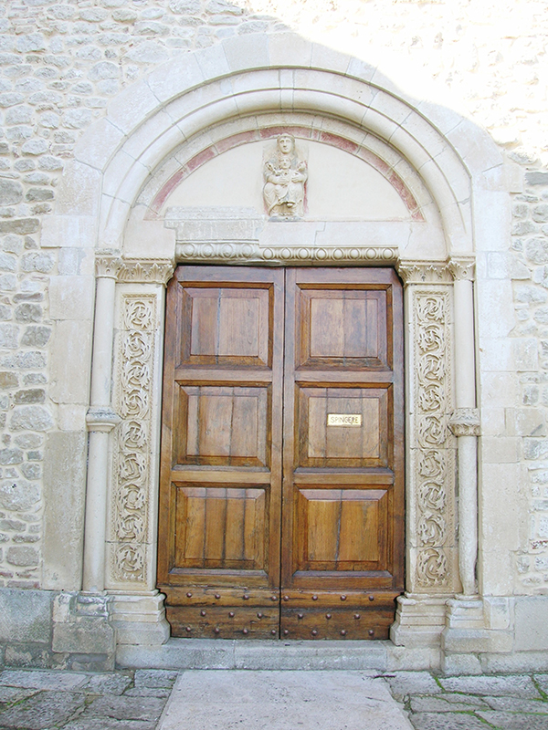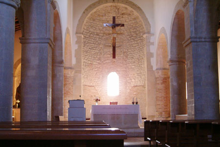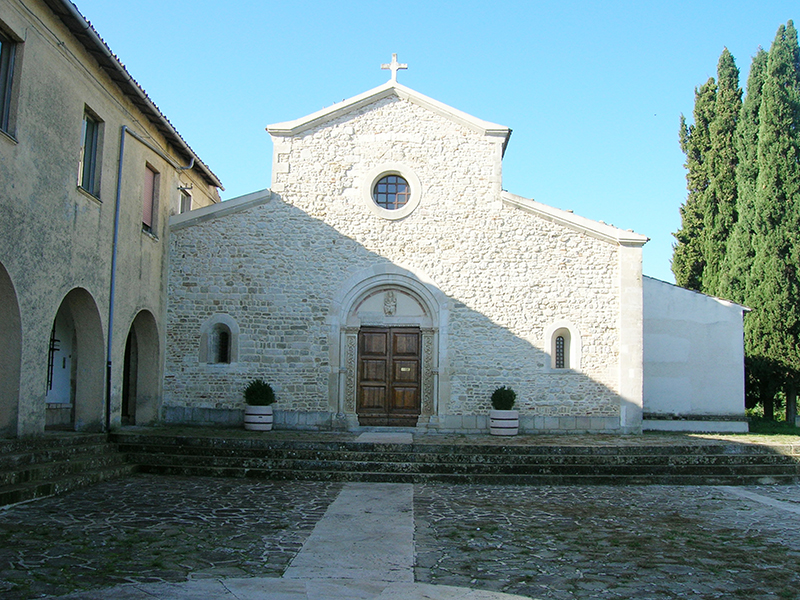 E' una spoglia ma bellissima chiesa di stile romanico a pianta basilicale, con tre navate sorrette da pilastri e colonne in pietra, con tetto poggiato su travi di legno. Ha una lunghezza di 25 metri e la larghezza di 12. Da alcuni tratti caratteristici si rileva che è un'opera artistica pregevole costruita presumibilmente dai Benedettini nel XII sec. E' da notare l'artistico portale sormontato da un bassorilievo di Sant'Anna con Maria Bambina. La chiesa è dedicata alla "Natività di Maria Santissima". In epoca imprecisata l'interno della chiesa venne completamente trasformato e ridotto in stile neoclassico. I più anziani del paese la ricordano ancora con le colonne ridotte a pilastri, con le volte costruite in muratura sotto il tetto e tutte le parti in pietra coperte da uno spesso strato d'intonaco. Poi, i Terziari Cappuccini interessarono la Sopraintendenza alle Belle Arti de L'Aquila che provvide a riportare, negli anni 1948-50, la struttura al suo primitivo stato e dichiarò la chiesa "Monumento Artistico d'interesse nazionale".