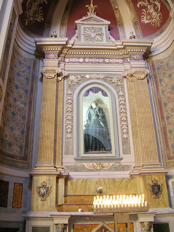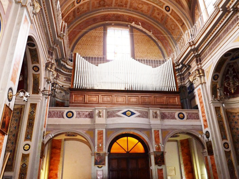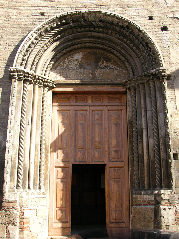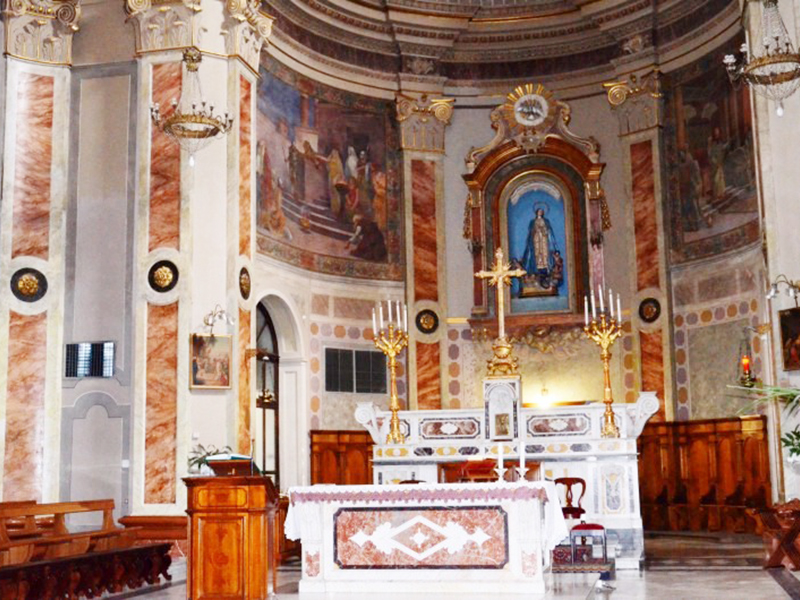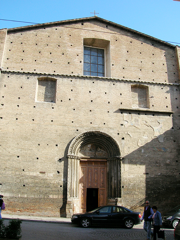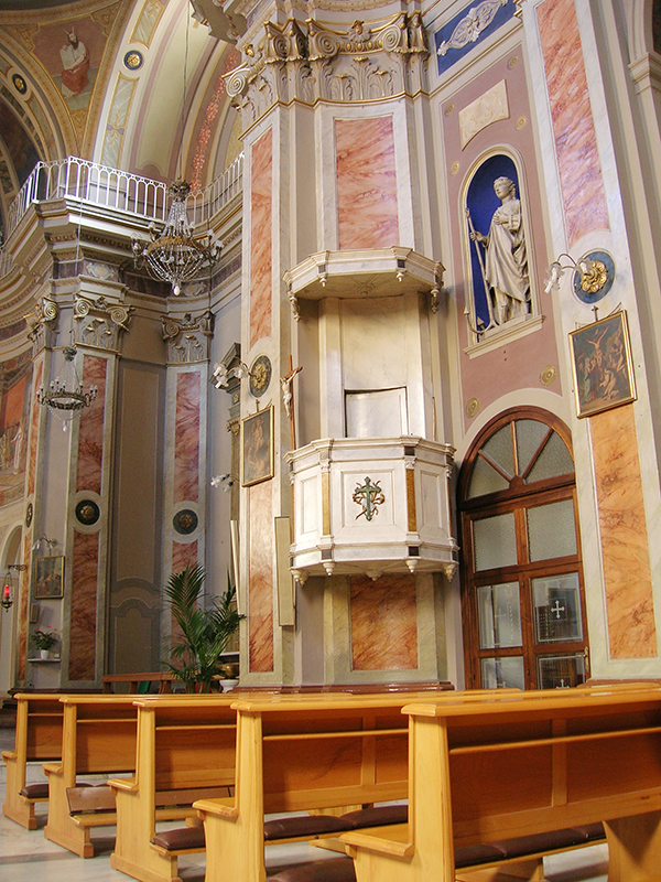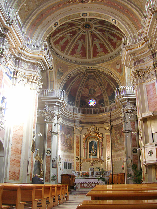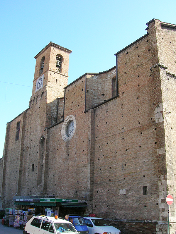 Il complesso francescano è di origine duecentesca e solo intorno al 1830, quando venne affidato alla Confraternita di S.Antonio da Padova, la chiesa venne dedicata appunto a S.Antonio. Si presenta oggi nella veste del rifacimento del 1327 con le successive modifiche del 1577 e di inizio Ottocento. La chiesa ha copertura a capanna e la facciata principale, oltre che avere un finestrone superiore che illumina l'interno, è abbellita da un bellissimo portale trecentesco con numerosi elementi decorativi. Sempre sulla facciata sono ancora visibili i resti di un antico affresco che secondo la tradizione popolare raffigurerebbe S.Ambrogio. Il fianco, in cui è incastonato il campanile del 1309, opera del Maestro Antonio di Florio, presenta dei poderosi contrafforti ed un rosone. L'interno è costituito da una navata unica in stile barocco, che termina nell'abside; lungo le pareti laterali sono le cappelle dedicate all'Addolorata, alla Madonna del Rosario, a Sant'Antonio e a Santa Lucia. Sul soppalco è presente un vecchio organo realizzato nel 1862.