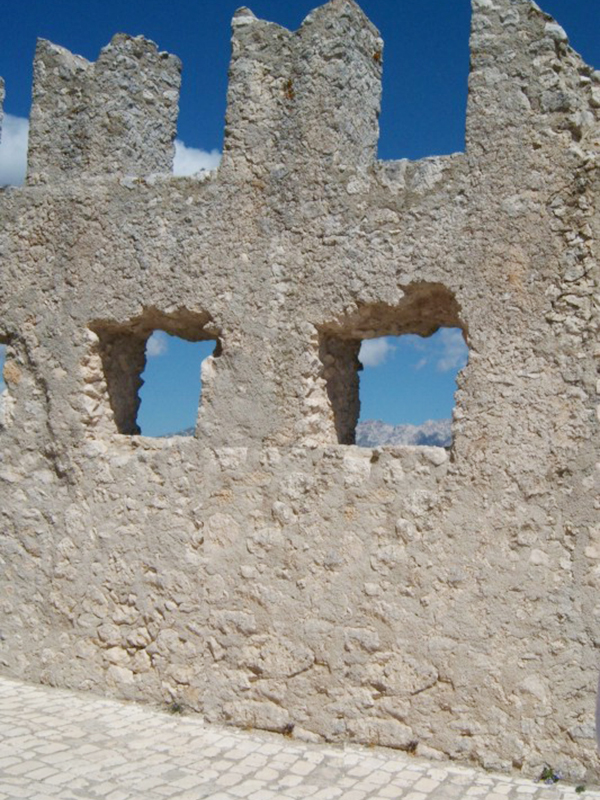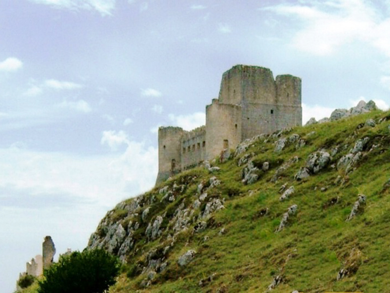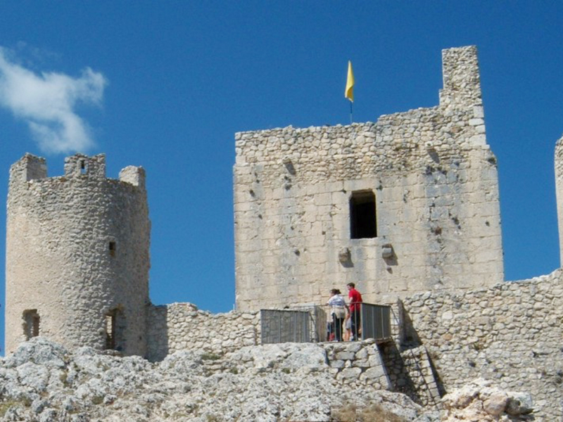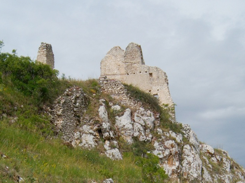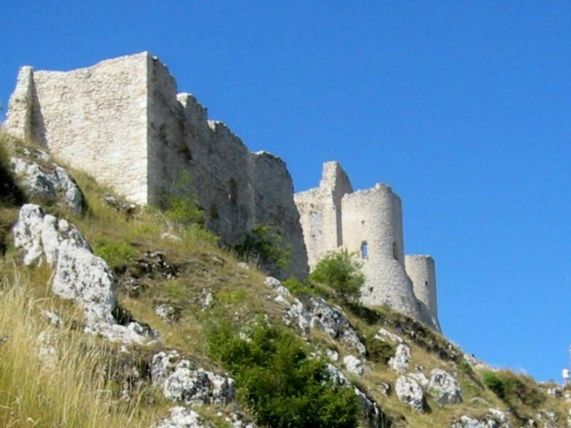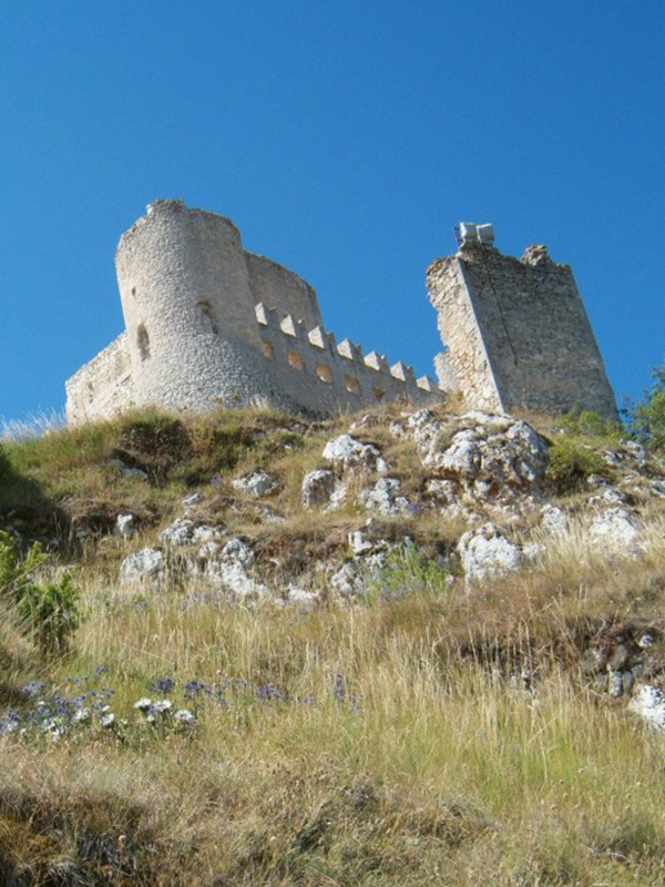 Situata all’interno del Parco Nazionale del Gran Sasso e Monti della Laga, si fa risalire all’anno 1000, sorta come torre di avvistamento e costituita originariamente solo da un torrione quadrangolare. Nel XV secolo, entrata nelle disponibilità della nobile famiglia Piccolomini, la fortificazione ebbe connotazione militare e fu dotata di una cerchia muraria e di quattro torri cilindriche. La sua felice posizione lungo le vie della transumanza verso le Puglie, per di più a vista dell’Altipiano di Campo Imperatore, delle Piane di Navelli e della Valle del Tirino, ne fece crescere via via l’importanza strategica ed economica, favorendo lo sviluppo di un piccolo centro abitato ai piedi della fortezza. Ad esso era collegata da un ponte di legno retrattile. Devastata dal violento terremoto che colpì la conca aquilana nel 1703, gli abitanti abbandonarono la rocca e si trasferirono ad una quota più bassa, fondando il borgo di Calascio. Il castello è stato oggetto di importanti lavori di restauro tra il 1986 ed il 1989 ed oggi è completamente recuperato.