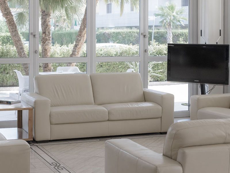 Completano la struttura: ampio portico attrezzato, ascensore, parcheggio e spiaggia riservata.