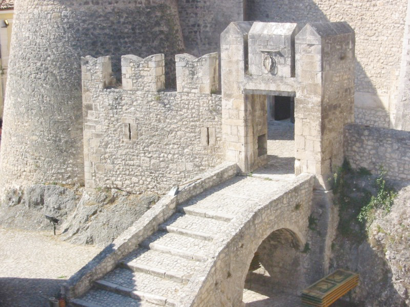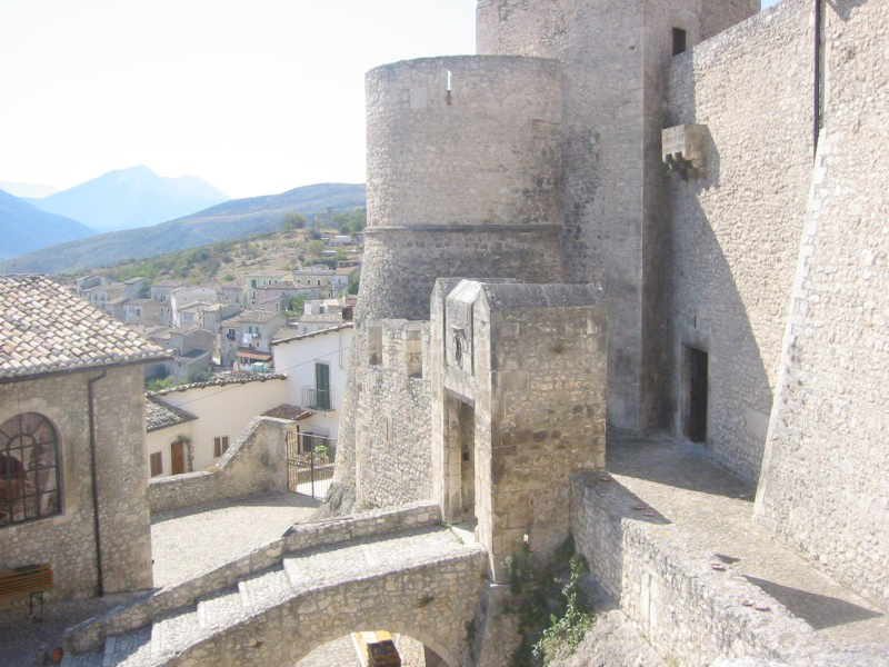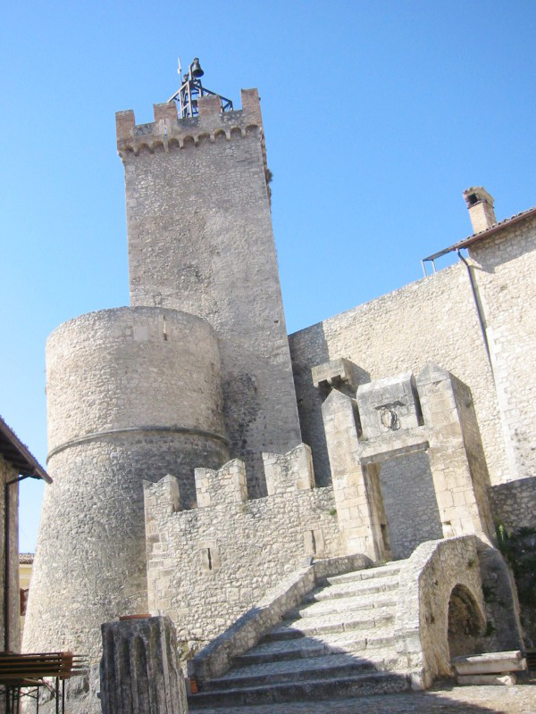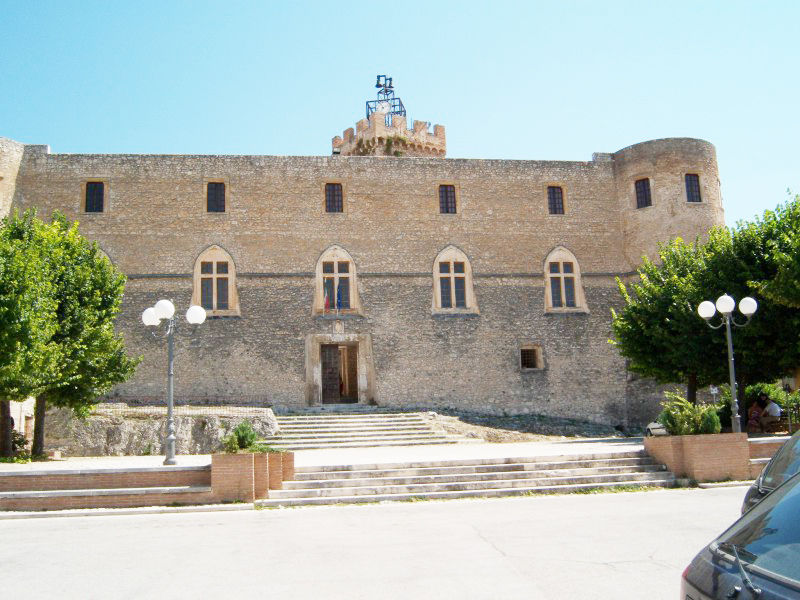 Le prime notizie scritte risalgono al IX secolo, quando fu sotto la giurisdizione ecclesiastica; divenuto feudo di Tolomeo di Raiano, nel 1284 passò a Carlo d’Angiò e poi agli Acquaviva. Agli inizi del secolo successivo fu compreso nella Contea di Celano e pervenne nel 1566 ai Medici, dopo essere stato signoria dei Piccolomini. Proprio nel periodo dei Piccolomini il castello visse il suo periodo di maggior fulgore: venne ampliato intorno alla metà del 1400 probabilmente riutilizzando una più antica fortificazione, di cui sarebbe testimonianza la torre quadrata centrale. Con queste caratteristiche salienti il castello resistette onorevolmente sia all'assedio portatovi da Fortebraccio da Montone nel 1423 che a quello di Pietro Navarro che nel 1528 guidò le truppe francesi contro L'Aquila. Nel 1924 usufruì di un importante restauro, in occasione del quale venne realizzato l'attuale ingresso verso la piazza, mentre l’antico ingresso, protetto da un fossato e da un ponte levatoio, dava sul lato opposto. Furono anche aperte le finestre per poter illuminare maggiormente gli ambienti interni. In uno dei muri del cortile interno è rimessa in opera una antica iscrizione sepolcrale di epoca romana che fa riferimento a Claudio e probabilmente alla Claudia Nova, strada a lui dedicata che attraversava la valle del Tirino.