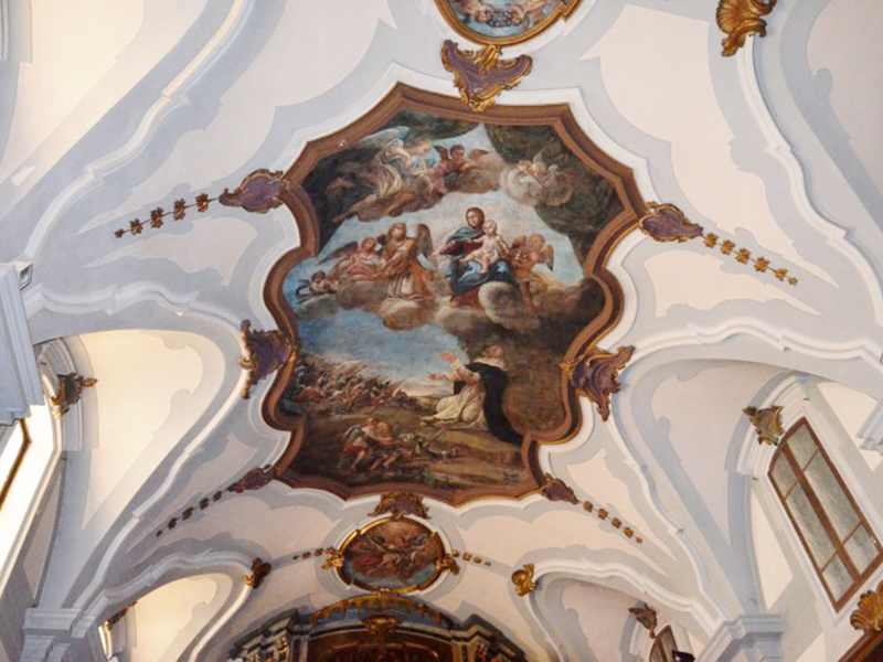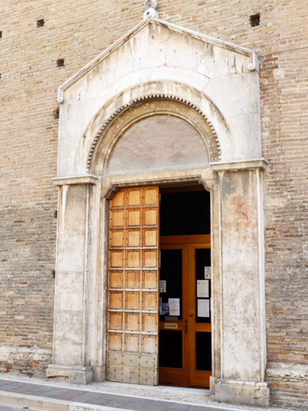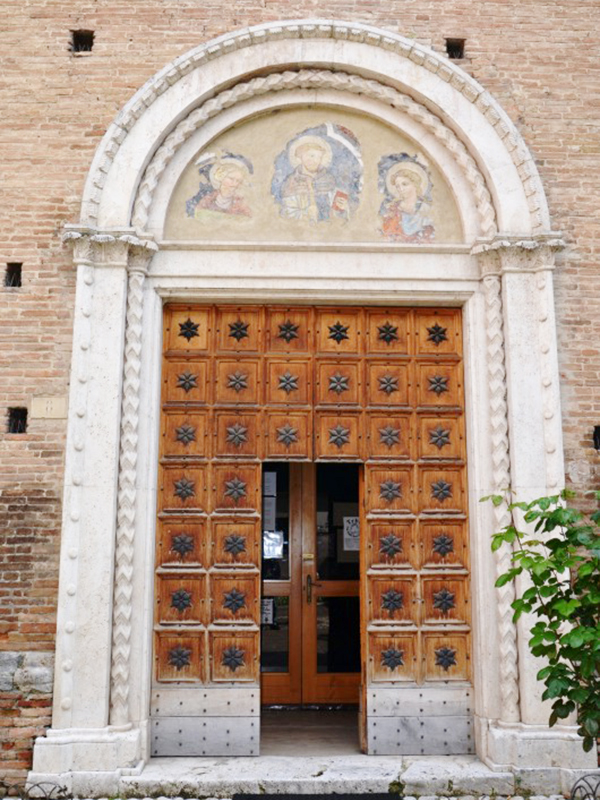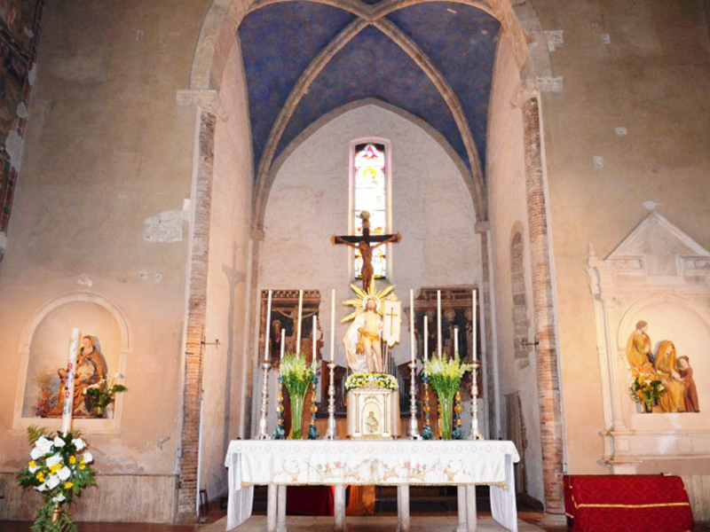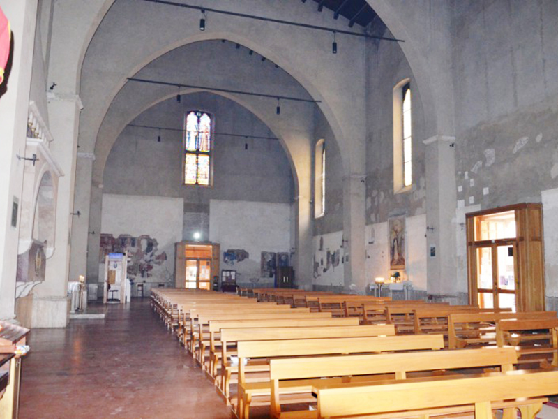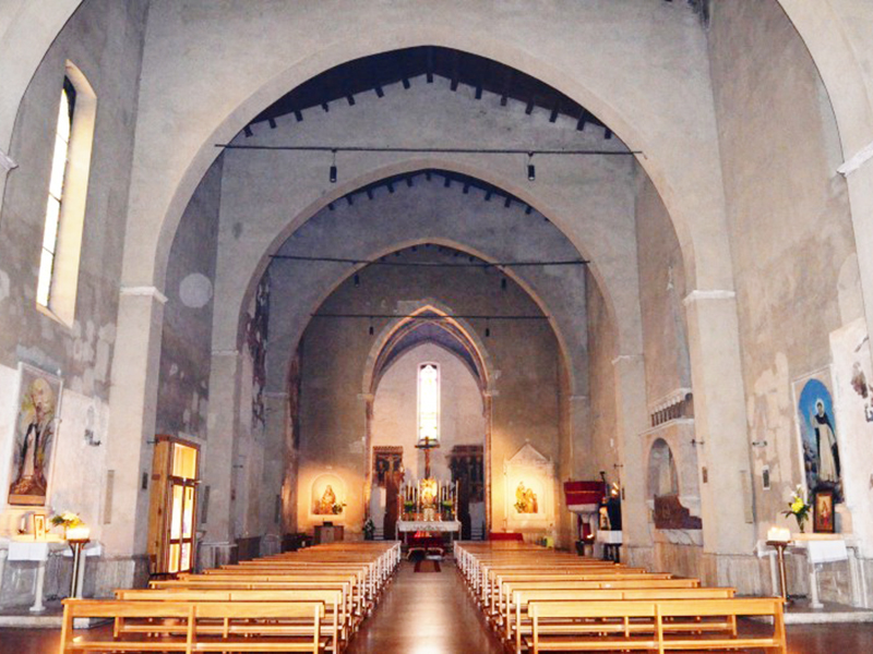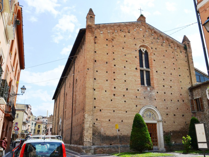 La costruzione si fa risalire alla metà del XIV secolo. Oggi appare nelle vesti del restauro e della parziale ricostruzione effettuata da Francesco Savini all'inizio del Novecento. Ha copertura a capanna ed è completamente in laterizio. In facciata si apre un bel portale nella cui lunetta sono stati rimessi in opera alcuni frammenti di affreschi quattrocenteschi che originariamente erano all'interno. L'interno è costituito da un'unica navata scandita da arconi gotici e coperta da soffitto ligneo a due spioventi. Sulle pareti sono stati riportati alla luce numerosi affreschi quattrocenteschi raffiguranti scene di vita di S.Domenico, rimasti nascosti sotto l'intonaco durante un precedente restauro. Di particolare pregio è la settecentesca Cappella del Rosario, adiacente alla chiesa, affrescata da Gilberto Todini (1701-1798) con stucchi del Clerici (1680-1739), legata anche alla devozione della omonima Confraternita. Negli anni Trenta del secolo scorso la chiesa, in occasione di importanti lavori di restauro della Cattedrale, per le sue grandi dimensioni venne elevata al rango di Vicaria della Cattedrale.