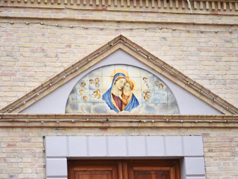 Inaugurata il 31 maggio 1931, ha copertura a capanna e facciata in mattoni a faccia vista coronata da timpano. Sulla facciata si apre un semplice portale ad architrave piano incorniciato in laterizio e sovrastato da un frontone affrescato. Il coronamento è caratterizzato da un timpano poggiato su dentellature in mattoni, al di sotto del quale è un grande orologio rotondo. Alla parete posteriore è appoggiata una torre campanaria a base quadrata che termina a guglia. L'interno è a tre navate, divise da archi a tutto sesto che poggiano su pilastri quadrati dagli spigoli smussati. L'interno ha avuto un intervento strutturale tra gli anni 1970 e 1980, con l'aggiunta di un nuovo altare in marmo.