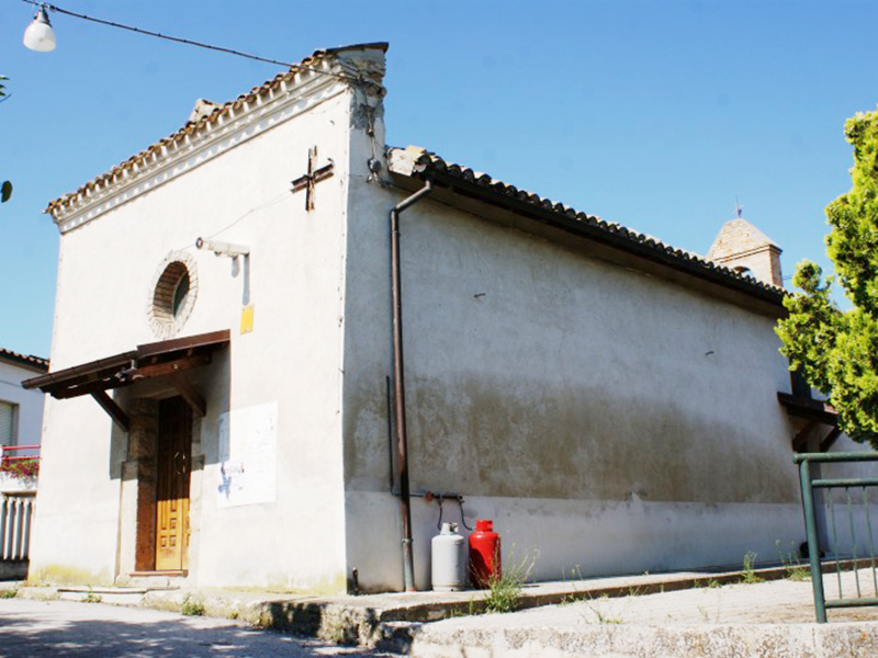 Già nota in documenti nel 1356, è stata più volte ristrutturata fino all’attuale aspetto. Ha copertura a capanna e sulla facciata, a coronamento orizzontale, si apre un portaletto incorniciato in pietra. Appena sopra il portale dà luce all’interno un finestrone rotondo incorniciato in laterizio. In corrispondenza della parete posteriore si erge un campanile a vela che ospita una campana. Nella chiesa è venerata la Madonna del Rosario, cui si tributano solenni festeggiamenti ogni prima domenica di settembre.