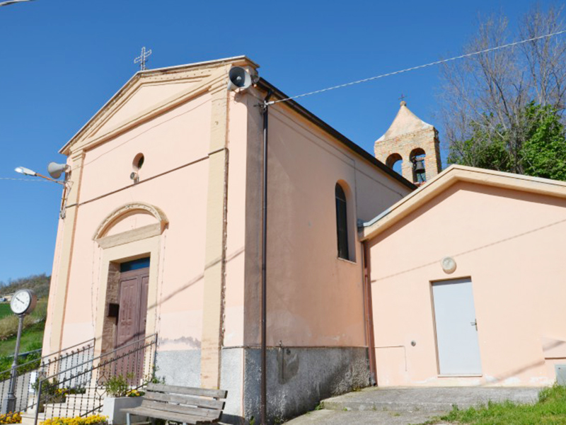 Si tratta di un edificio ottocentesco con copertura a capanna e semplice facciata culminante in un timpano. Dalla parete posteriore si alza un campanile a vela in mattoni per due campane, ma una sola ve ne è alloggiata. Al di sopra del portale ad architrave piano è una lunetta e sui lati lunghi si aprono stretti finestroni rettangolari con arco a tutto sesto.