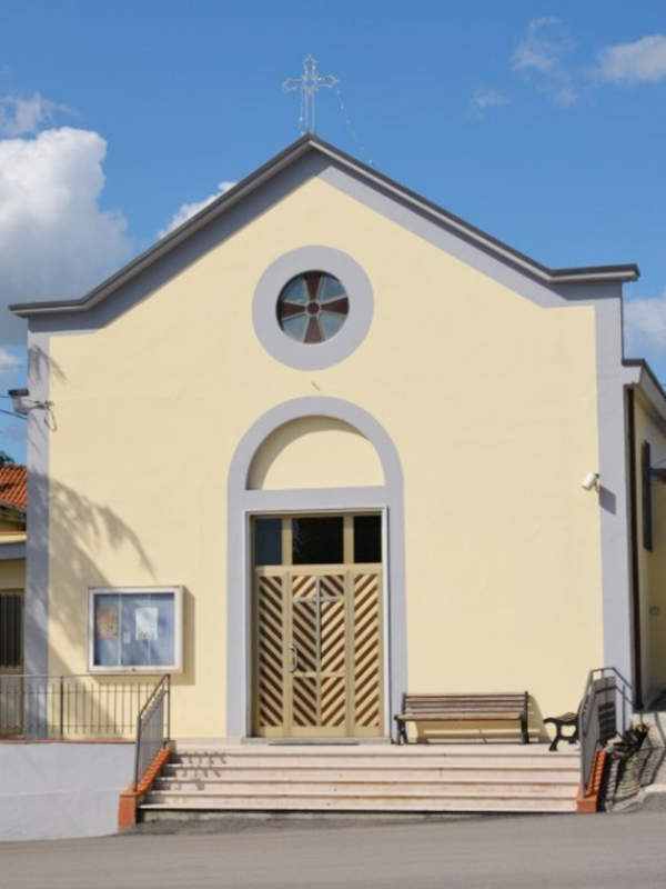 E' poco più di una cappella ed ha copertura a capanna. In facciata si apre un semplice portale ad architrave piano sormontato da lunetta e, più in alto, un finestrone rotondo. Il piano di terra è sopraelevato rispetto al piano della strada e l'accesso alla chiesetta avviene per mezzo di una scalinata composta da cinque scalini. L'interno è composto da un'unica piccola aula. Dalla parete posteriore si alza un piccolo campanile a vela con due fornici, ma al momento con una sola campana.