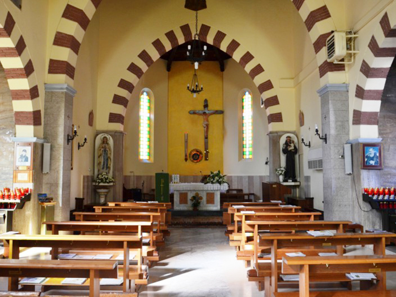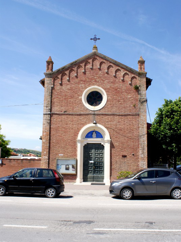 Una lapide in marmo all’interno della chiesa rievoca che “Antonius Micozzi episcopus aprutinum templum hoc aere proprio in memoriam matris suae Felicitatis aedificandum curavit idibus iuniis MCMXXXIV divo Antonio Patavino”. Si presenta completamente in laterizio con copertura a capanna. In facciata si apre un portale ad architrave piano sormontato da lunetta. Più in alto un grande finestrone rotondo dà luce all’interno. Su ogni parete laterale si aprono tre finestre strette ed alte con arco a tutto sesto. Alla parte posteriore della parete sinistra della chiesa è poggiata una torre campanaria a base quadrangolare sulla quale trovano posto due campane. All’interno la navata unica con copertura in legno a vista è scandita da tre arconi a sesto acuto, l’ultimo dei quali, sormontato dallo stemma gentilizio del Vescovo Micozzi, separa la navata dall’abside e dà accesso alla zona presbiteriale. La presenza lungo la navata di due piccole cappelle laterali contrapposte simula un transetto.