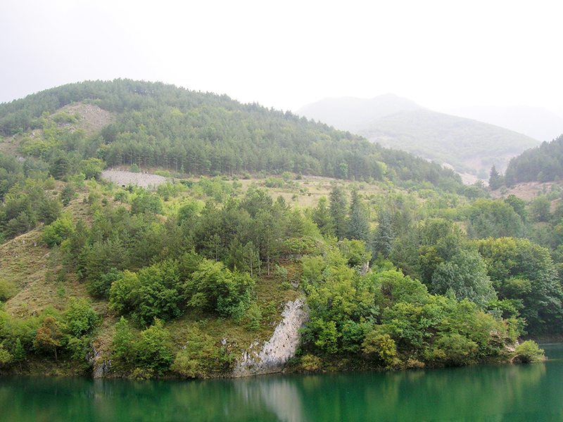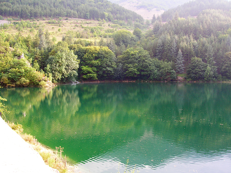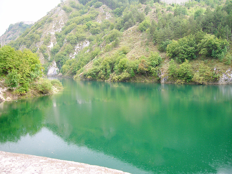 Il lago di San Domenico è un invaso artificiale, creato nel primo dopoguerra dall'Enel per esigenze di approvvigionamento elettrico. Il lago sorge in località Prato Cardoso, magico ambiente, ideale per il relax, per i pic-nic e per la pesca. Infatti questo bacino dal caratteristico colore verde smeraldo intenso, anche più scuro di quello di Scanno, è ricco di trote fario. Dal lago partono alcuni sentieri, immersi nelle verdi suggestioni tra boschi e lago, che si collegano con l'abitato di Villalago, con le montagne adiacenti come Rosa Pinnola e Valle Preziosa e con il famoso Eremo di San Domenico, da cui ha preso il nome, già anticamente presente con la chiesetta ed il sacro speco, dove il taumaturgo si ritirò in preghiera intorno al 1013. La fauna più interessante è costituita dal Germano Reale, incontro obbligato per chi frequenta questo luogo.