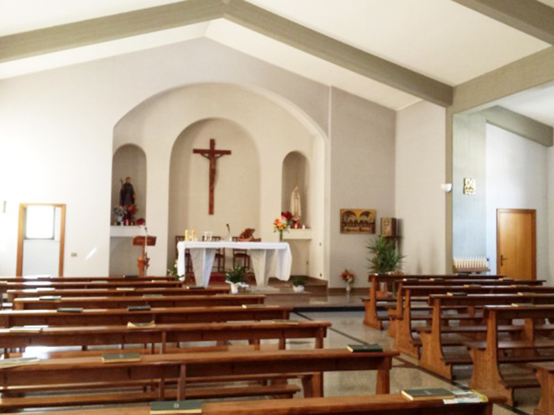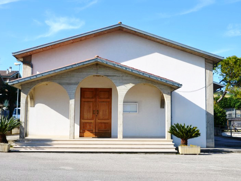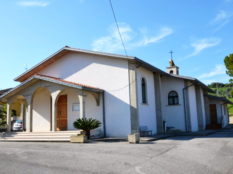Ha copertura a capanna e la porta principale è preceduta da un piccolo portico sostenuto da colonnine quadrate ed abbellito da archi a tutto sesto. Nella parete posteriore è incastonato un piccolo campanile in cemento armato a base quadrata che ospita una campana.