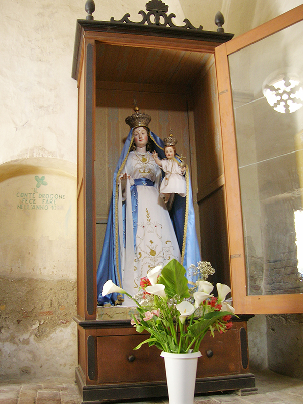 In via del Mercato vecchio, in fondo all'abitato, si trova Santa Maria de Recepto, fondata nel sec. XI con annesso ospizio (da cui il nome). Nel 500 l'Abate Giovanni Battista Umbriani la trasformò e ci aggiunse il portale con blasone (un altro è sul muro anteriore). Scenografico l'altare barocco che costituisce un esempio di retablo con motivi architettonici, sculture e coronamento che inquadra una finestra. Ordinato in tre parti verticali, separate da colonne, si articola in tre nicchie. In quella centrale è posta la statua lignea della Madonna con il Bambino, ai lati due Santi.
