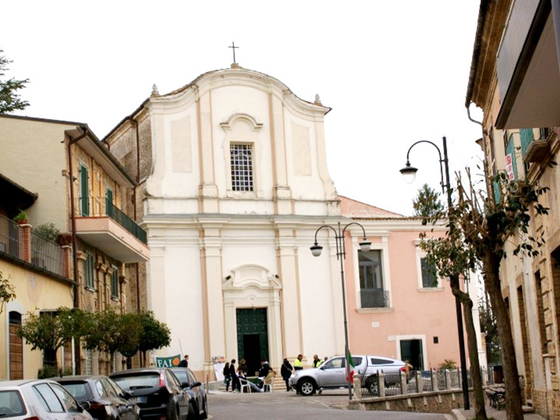 Già dedicata a S.Antonio Abate, ha copertura a capanna; la sua facciata, datata 1754, è scandita da lesene ed è a coronamento mistilineo, particolari che ne esaltano lo stile barocco. Sia il portale, ad architrave piano, che il finestrone superiore sono decorati da timpani spezzati e cornici curvilinee. Alla parete posteriore si appoggia il campanile in laterizio. L’interno è a navata unica che termina nell’abside, dov’è collocato uno splendido altare ligneo ed un bellissimo organo costruito nel 1760 dal maestro Onofrio Cacciapuoti da Vasto (Ch). Incastonato alla parete è l’emblema diocesano del Giubileo del 2000.