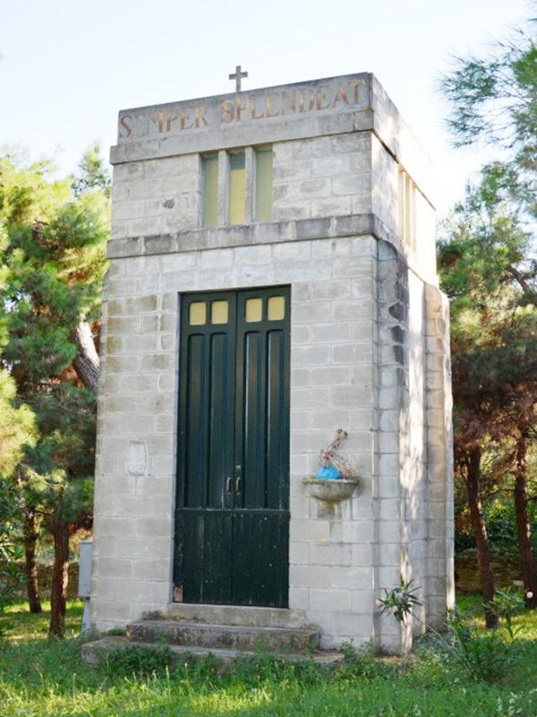 Venne costruita nel punto in cui, secondo la leggenda, nel 1566 San Leone si incontrò con dei soldati Turchi che, sbarcati sulla costa, si dirigevano verso il borgo e li fece desistere dall’assaltare quelle povere case mostrando loro una torcia che, anziché consumarsi, aumentava sempre più la sua luce. Nell’attuale sistemazione è un’edicola in pietre squadrate in mezzo ad una radura tra gli alberi, circondata da un recinto in pietra all’interno della quale è una piccola statua della Madonna dello Splendore con un abito blu. Venne eretta intorno agli anni Trenta del secolo scorso su progetto del marchese Giuseppe De Torres. In facciata, a sinistra è un fascio littorio e a destra un’acquasantiera incastonati alla parete; al centro si apre un alto portale ad architrave piano, mentre in alto è la scritta dorata “Semper splendeat”. Nel 1992 la cappella venne restaurata e gli spazi esterni ripuliti per offrire un migliore accesso ai devoti; alcuni anni più tardi venne cambiato anche il colore della veste indossata, che divenne bianca, come è tuttora.