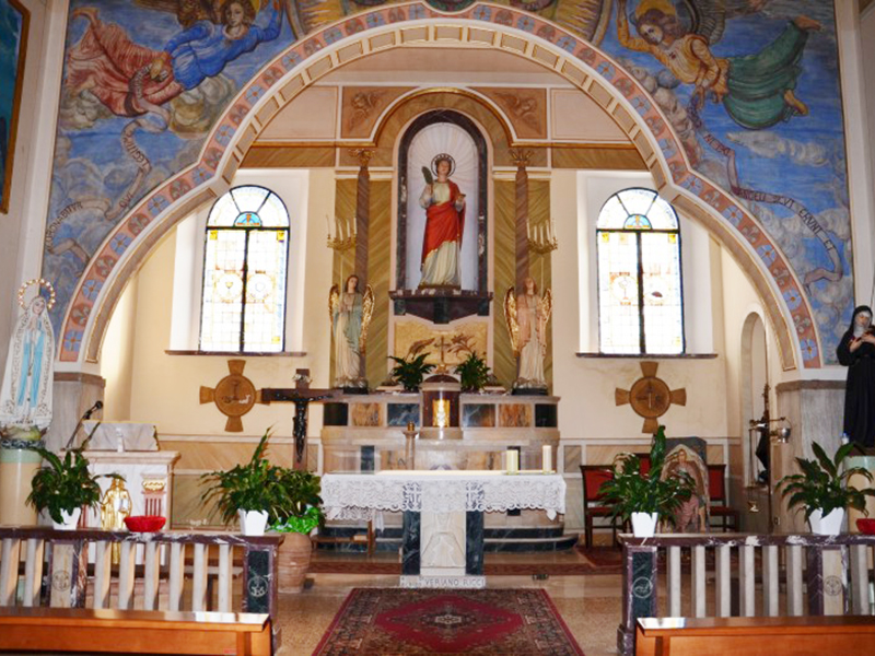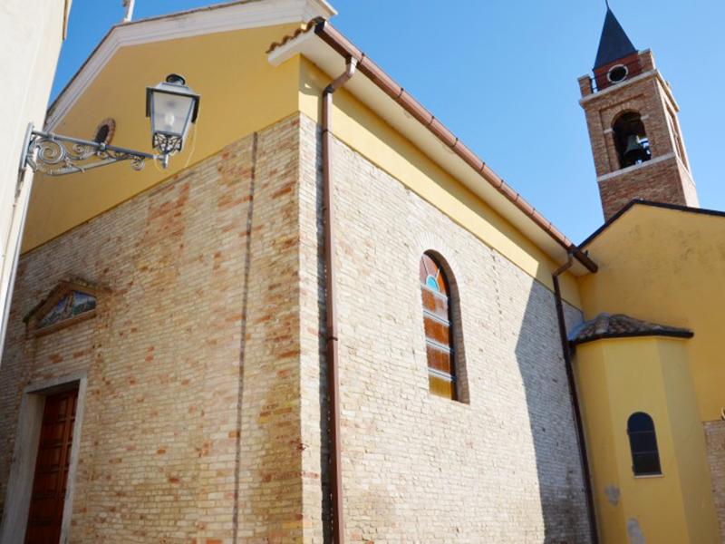 Dopo rifacimenti e restauri, ci giunge in una veste completamente rimodernata. Parlando solo dei tempi recenti, è stata ristrutturata nel 1938, poi negli anni Sessanta del secolo scorso è stata radicalmente modificata, con l’eliminazione dei tre altari laterali e l’aggiunta delle due cappelline oggi visibili. Nel 1996 iniziò un altro restauro, ed in quell’occasione venne realizzata la decorazione dell’interno ad opera del pittore di S.Omero Renato Coccia (1935). Nel 2007 a spese dai fedeli venne realizzato il nuovo portone e consegnato alla chiesa in occasione della solennità religiosa di S.Rocco, santo a cui gli abitanti sono particolarmente devoti. L’interno della chiesa è ad aula unica e la zona presbiteriale è separata dal resto da un arco trionfale affrescato. Nei pressi di una moderna acquasantiera è incastonato al muro il simbolo diocesano del Giubileo 2000. Alla parete posteriore si appoggia un alto campanile che termina a guglia.