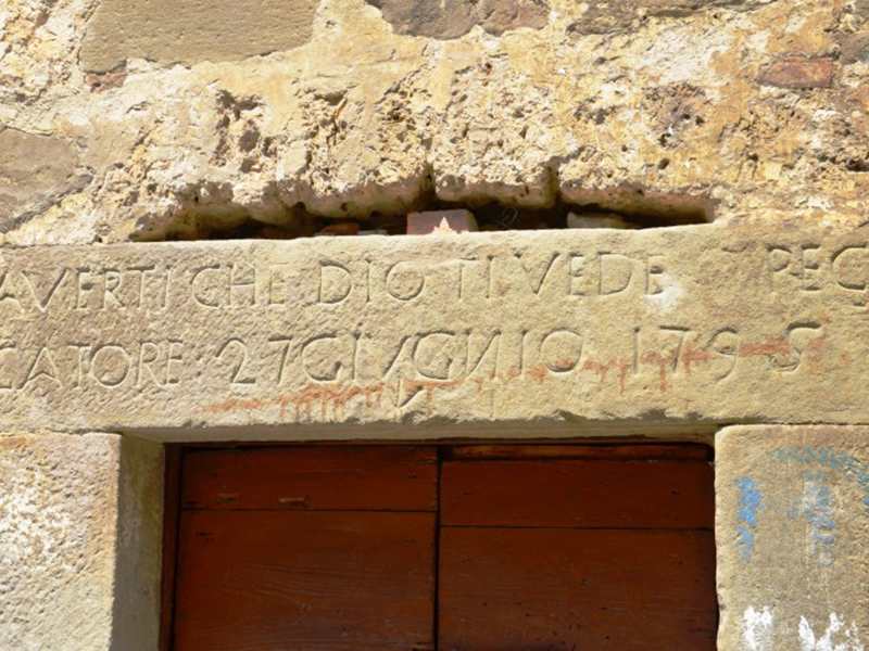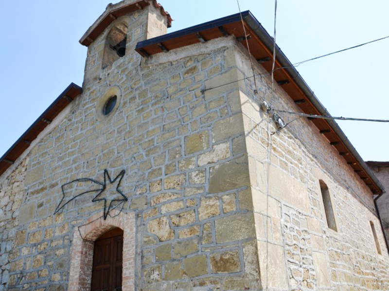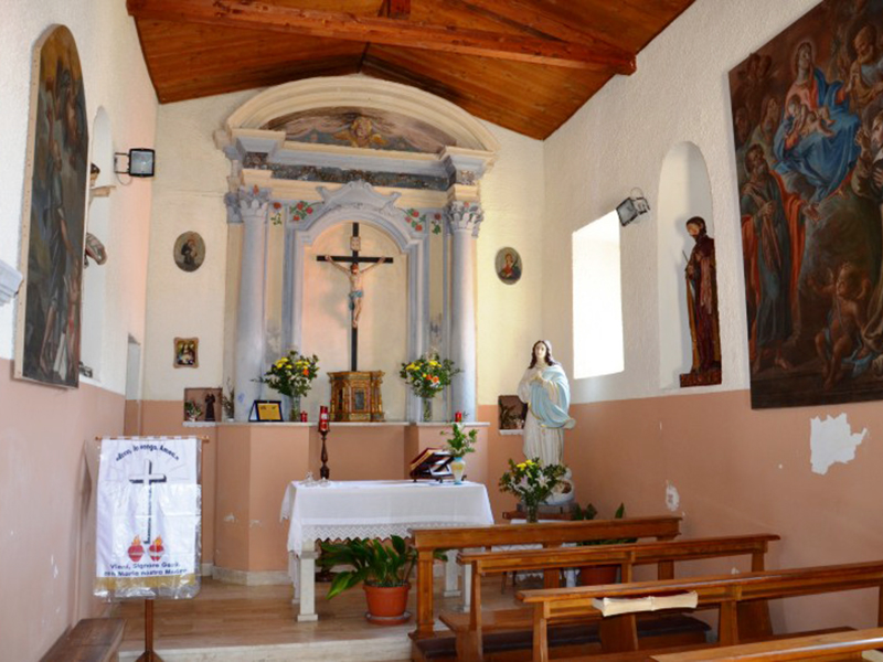 La chiesa si presenta con copertura a capanna e dalla sua facciata in pietra si erge un piccolo campanile a vela che sorregge una campana. Il semplice portale è incorniciato in laterizio. Sulla parete destra è evidente un antico accesso, forse una porta di comunicazione con l’annesso convento, sul cui architrave si legge il probabile anno di costruzione della chiesa: “Gloria tibi soli 1569”; su una finestra a feritoia che si trova sulla facciata è inciso, insieme ad una scritta illeggibile, l’anno 1621. L’interno è costituito da un’unica piccola navata al termine della quale c’è un modesto altare barocco; la copertura è in legno con travature a vista. Appena dopo l’ingresso sulla sinistra, comunicante con la chiesa tramite un grande arco a tutto sesto, c’è una piccola cappella la cui parte sottostante veniva adoperata per la tumulazione dei defunti.