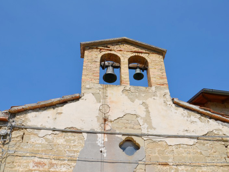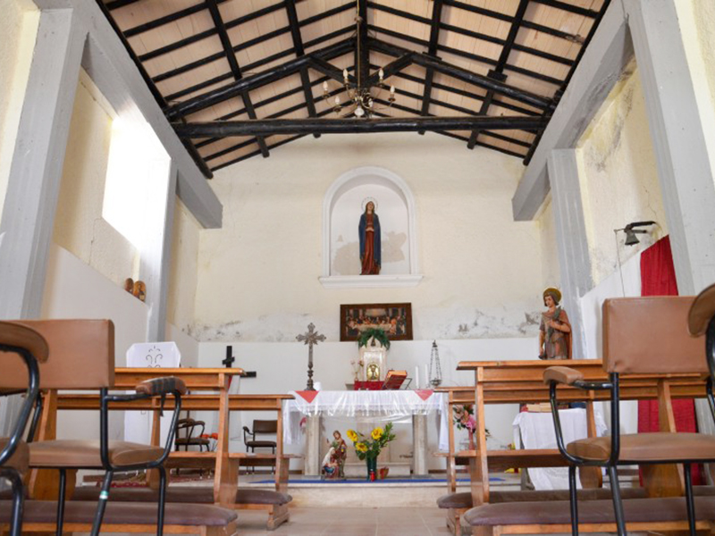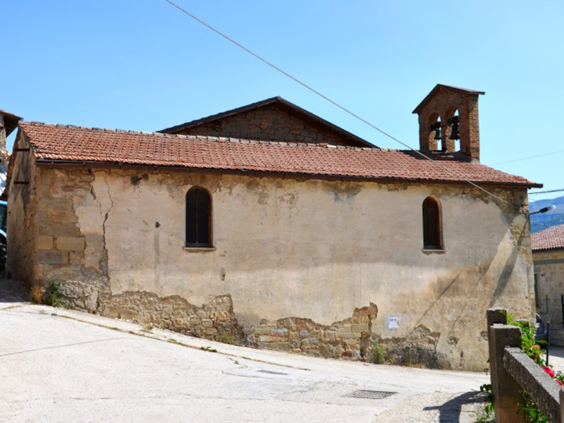 Probabilmente settecentesca, oggi ci appare così in conseguenza dei numerosi restauri subiti nel tempo, l’ultimo dei quali avvenuto nel 1952. Ha copertura a capanna e sulla facciata si apre un semplice portale in pietra al di fuori dei canoni abituali nella zona, in quanto ad arco acuto. In facciata è un campanile a vela che sorregge due campane. Su quella di sinistra, più grande, si legge “A fulgure et tempestate libera nos Domine”, mentre su quella di destra è la scritta “Ave Maria Gratia Plena MDCCCLXVIII”. All’angolo posteriore sinistro della chiesa è rimessa in opera una pietra di ammorsamento su cui a malapena si legge “A.D. 1701”. All’interno c’è un’aula unica che presenta copertura con capriate a vista e sono ben visibili i lavori di consolidamento effettuati sulla struttura.