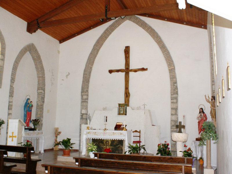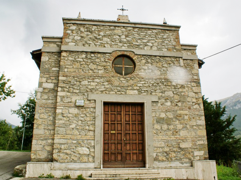 Databile intorno al 1600 e ben ristrutturata in tempi recenti, si presenta con tetto a capanna e facciata a coronamento orizzontale. Questa mostra un finestrone rotondo che sovrasta il semplice portale e, come il resto dell’edificio, è realizzata con pietre legate da malta, intervallate da tre file parallele di mattoni posti a due a due. La navata è unica e priva di abside; posteriormente all’edificio si erge una torre campanaria culminante con una cuspide realizzata in mattoni. Questa ospita una campana quattrocentesca che si vuole proveniente dall’antico romitorio di Santa Maria Maddalena, di cui oggi sono visibili solo alcuni resti nei pressi dell’omonima grotta.