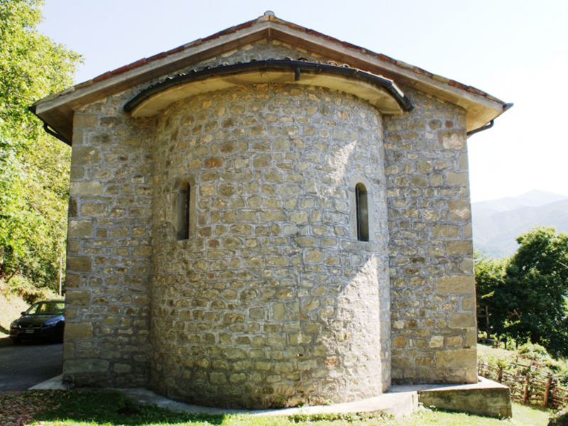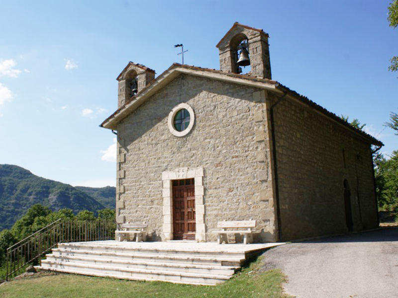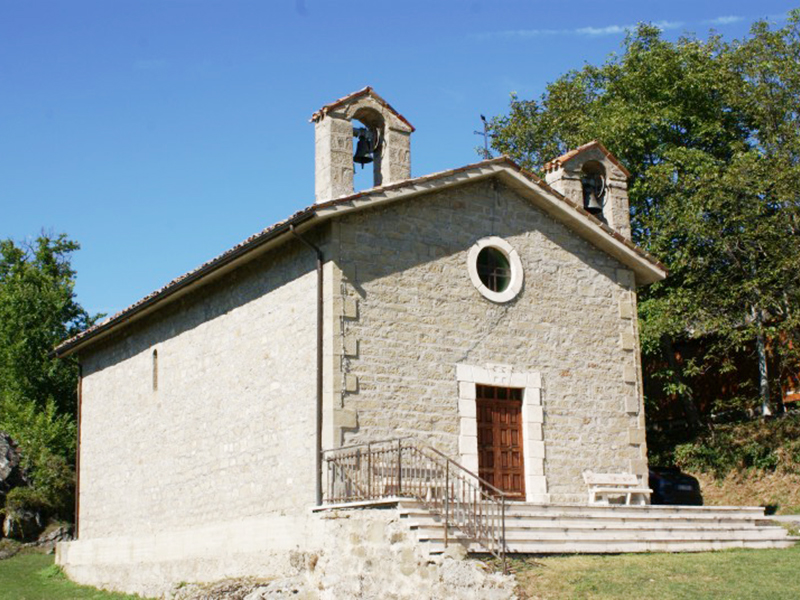Si tratta di una costruzione cinquecentesca in pietra restaurata nel 1992 che ha copertura a capanna con due campanili a vela in facciata, ciascuno a sorreggere una campana. Il portale è semplice, è ad architrave piano ed è incorniciato in pietra; al di sopra di esso trova posto un grande finestrone rotondo. Su una della piccole e strette finestre sui lati lunghi è rimesso in opera un elemento in pietra che reca incisi alcuni numeri ed alcune lettere non meglio decifrabili. L’interno è ad aula unica che termina in un’abside.