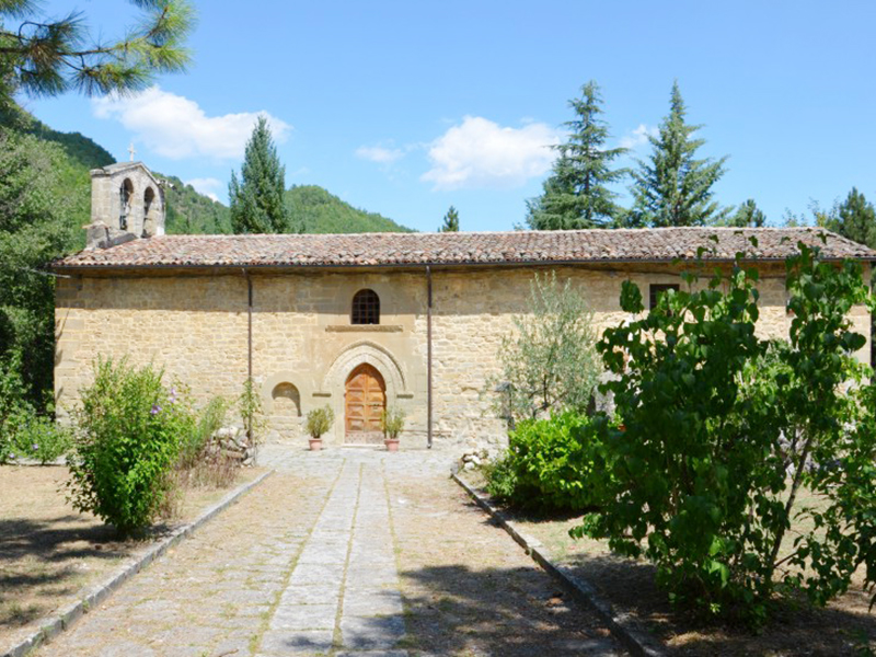 Risale all’XI secolo, probabilmente realizzata dai Benedettini intorno all’anno mille. L’attuale edificio è però il frutto di un rifacimento cinquecentesco e di due restauri, uno nel 1831 ed uno in tempi recenti, mentre la cripta conserva le caratteristiche originarie. E’ con tetto a capanna e dalla facciata, quasi a strapiombo sul torrente Castellano, si erge un campanile a vela che ospita due campane; su una di esse è la scritta “A ful(mine) et tempestate libera nos Domine. A.D. MDCCCLXV”. Un semplice portale con arco a tutto sesto, al di sopra del quale c’è una finestra ad occhio, entrambi incorniciati in laterizio, si apre sulla facciata in pietra. Un secondo portale, bellissimo, si apre su una delle pareti lunghe. Realizzato nel 1512, come si legge in una delle iscrizioni del portale stesso, quale ampliamento di un ingresso già esistente, è ogivale e le cornici in pietra che lo coronano ed il davanzale della finestra soprastante recano varie figure ed allegorie scolpite, a volte raffiguranti animali fantastici e maschere. L’interno è ad aula unica. Questa termina nella zona presbiteriale, sopraelevata di tre gradini rispetto al resto, dove trova posto una semplice mensa d’altare. Sempre al Cinquecento risalgono gli affreschi ancora ben visibili sulle pareti laterali. Questi, raffiguranti soggetti religiosi a carattere popolare, vennero successivamente coperti di intonaco; i tentativi di riportarli alla luce in tempi recenti li ha poi gravemente danneggiati, ma tra essi si distinguono una Crocifissione, un S.Francesco, un S.Antonio Abate ed un’Annunciazione.