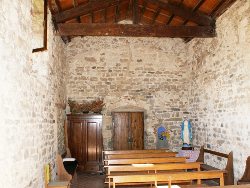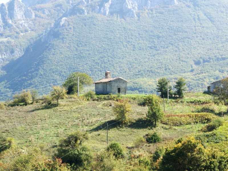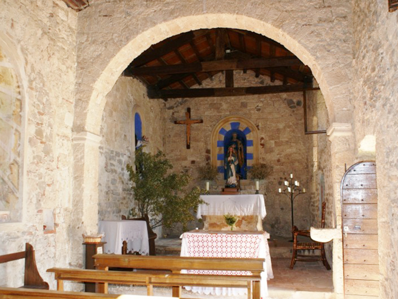 Si presenta a navata unica spezzata da un arco, con tetto a capanna sorretto da travi in legno e con una piccola torre campanaria per quattro campane, anche se oggi ne vengono ospitate solo due. Sull'architrave del portone principale è incisa la data del 1636 inframezzata dalle chiavi pontificie. Fino a verso la metà del secolo scorso aveva ben tre ingressi, dedicati rispettivamente a S. Nicola, a S. Pietro e a S. Martino. Oggi ne sono rimasti solo due, in quanto il terzo è stato murato, anche se è ancora ben visibile, probabilmente per utilizzare al meglio l'aula ecclesiale per il rimessaggio delle pecore. Rimasta sconsacrata per tanto tempo, circa venti anni fa è stata ristrutturata e nel 2002 dotata di nuovo delle campane a cura degli abitanti del luogo. All’interno si trovano due statue in materiale fittile raffiguranti la Madonna; due nicchie sulle pareti ospitano le statue di S. Pietro e di S. Martino ed una terza nicchia ospita un affresco raffigurante San Nicola, in sostituzione della sua statua, spezzatasi tanti anni fa durante una processione. Alla base dell'affresco ormai sbiadito si legge la data del 1786.
