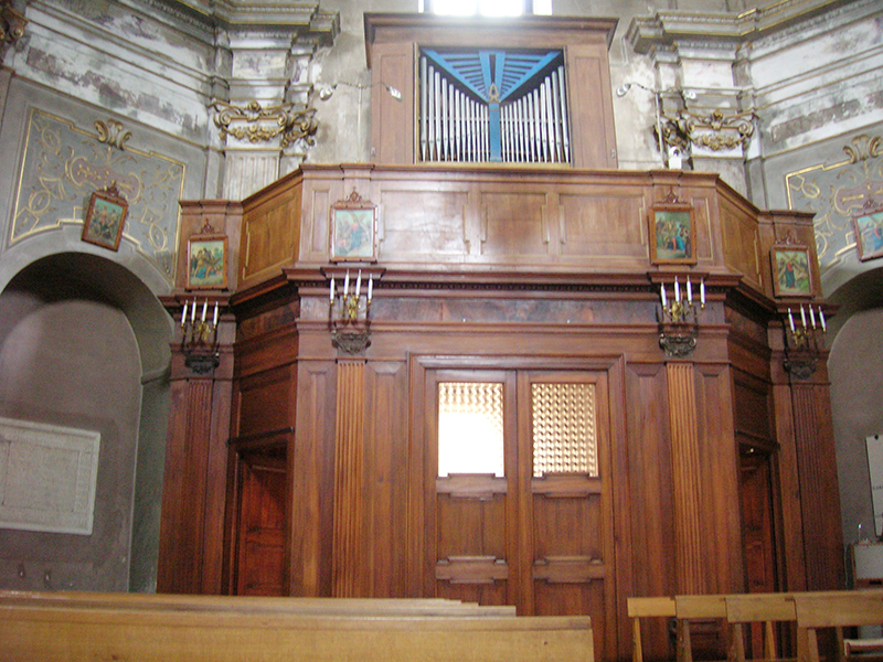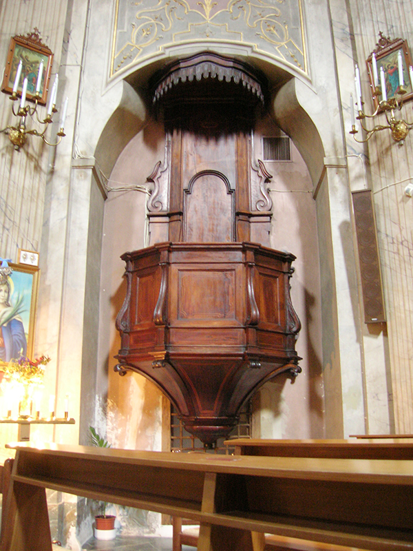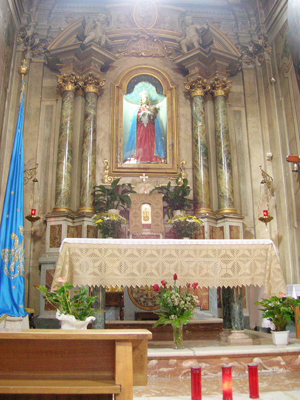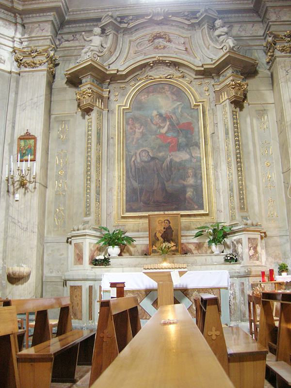 L’organismo presenta un impianto centrale ottagonale coperto a cupola, reso longitudinale mediante l’immissione di un vano presbiteriale quadrato coperto da una pseudo cupola schiacciata. I lati disuguali dell’ottagono di base accolgono cappelle poco profonde lungo l’asse trasversale e nicchie di ridotte dimensione lungo le diagonali. La facciata principale si mostra articolata in due livelli, dei quali l’inferiore è più largo, probabilmente a causa della pianta centrale dell’edificio, eccezionale nell’architettura religiosa scannese, che ricorre usualmente a spazi ad aula. Le pareti esterne sono scandite da paraste in pietra che determinano porzioni centrali rivestite a intonaco, caduto soprattutto nella parte centrale superiore. Di notevole interesse le pregevoli decorazioni in stucco di cherubini, cornici, volute, in particolar modo dell’altare maggiore, che si inseriscono con misurato equilibrio nella struttura architettonica. L’altare laterale a sinistra presenta un paliotto dalla forma piatta, una cona con due pilastri a pianta triangolare e una tela centrale di Andrea Manei del 1764 con la rappresentazione di San Francesco di Paola, e il timpano spezzato decorato con cherubini in stucco. Nella tela la scena raffigurata è ambientata in un paesaggio naturale con la presenza del santo che ha una visione celeste; il dipinto è di buona fattura. L’altare laterale a destra nella struttura è simile all’altare di sinistra e presenta una tela di buon livello artistico di Domenico Raimondi del 1767 con Giuseppe Calasanzio, fondatore della congregazione degli Scolopi. Sull’altare maggiore è posta la statua della Madonna delle Grazie, proveniente dalla vecchia chiesa in Via Silla in seguito al trasferimento, avvenuto nel 1907, della confraternita omonima; in quell’occasione fu inoltre rimossa la tela della Circoncisione del XVIII secolo per far posto a quella della Vergine. La volta principale dell’edificio fu dorata e affrescata con i quattro Evangelisti da Filippo Ballerini e Arcangelo Centinanti nel 1913-1914.