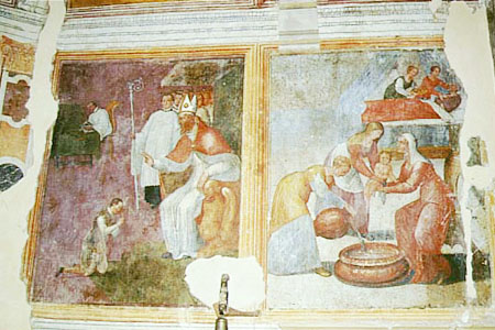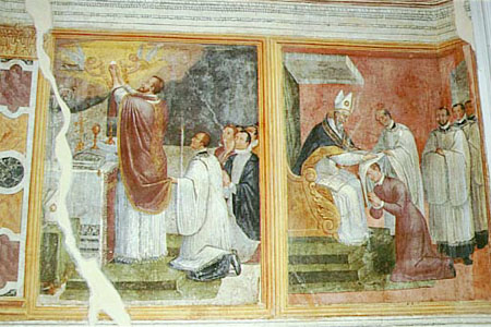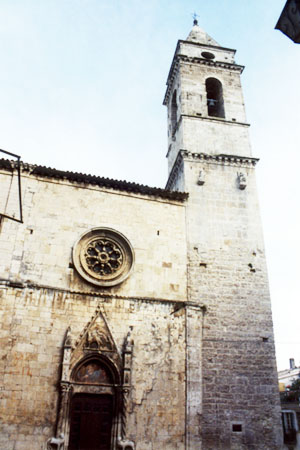 La chiesa di S. Martino, voluta da Isabella di Acquaviva, conserva pezzi trecenteschi di notevole valore: il portale centrale è caratterizzato da colonnine tortili su leoni stilofori al di sopra dei quali svettano due alte cuspidi che inquadrano il frontone timpanato e decorato con un pregevole bassorilievo raffigurante S. Martino. Nel 500 la chiesa fu ampliata per volere della Contessa Iacovella di Celano ed assunse l'attuale impianto a tre navate con transetto, cupola ellittica e coro ingentilito da affreschi rappresentanti la vita del Santo.