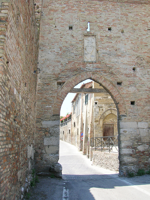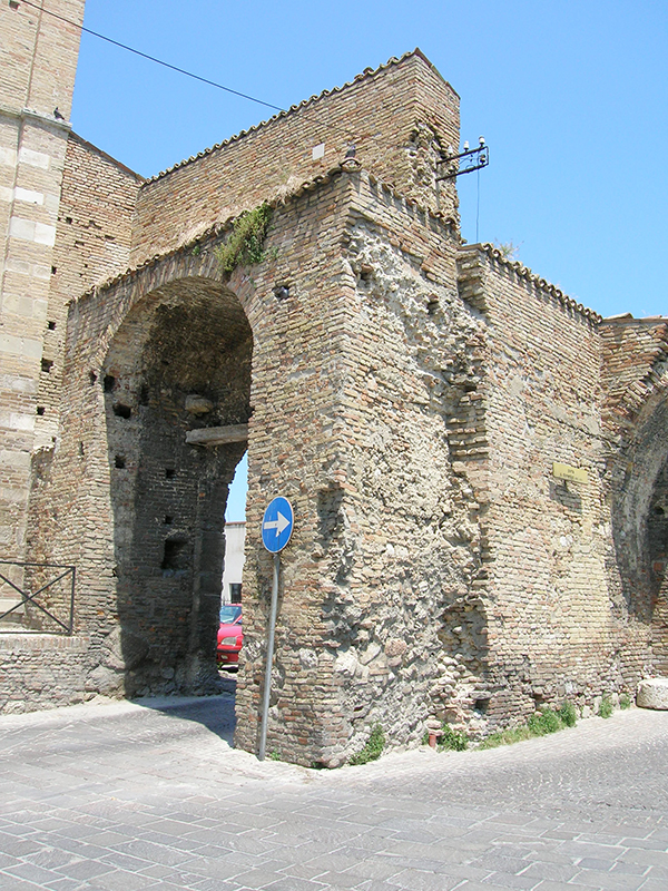 Sorta verso il 1528 sulla base di ricordi gotici, fu opera di architetti militari che fortificarono le mura cittadine al tempo della guerra franco-spagnola; negli stipiti e nel basamento troviamo elementi lapidei, che appartenevano alla preesistente porta medioevale. Anche la lapide con i classici gigli angioini e tre scudi triangolari che si trova in alto all'esterno รจ un elemento di spoglio della porta precedente.