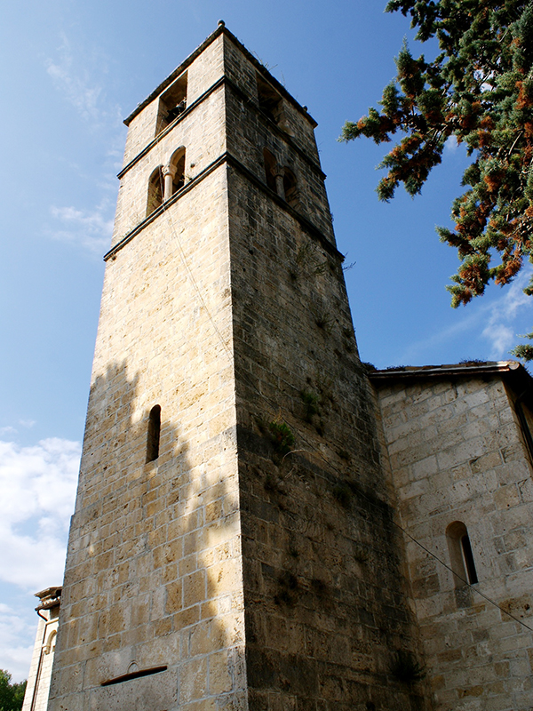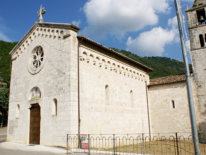 Si tratta di una antica chiesa benedettina risalente al XII secolo per lungo tempo assoggettata all’Abbazia di Farfa. Inizialmente a pianta rettangolare con navata unica che terminava con l’abside, nel periodo fascista fu ristrutturata e modificata, con l’aggiunta di un’altra navata, più grande, perpendicolare alla prima. Il tetto è a capanna, realizzato con capriate in legno a vista; la facciata è elegante ed abbellita da un grande rosone appena sotto il frontone. La lunetta subito al di sopra del portone contiene 39 mattonelle in ceramica raffiguranti tutte insieme scene di santi: vi si riconoscono San Vito, Sant’Antonio e la Madonna Assunta in cielo. Posta in aderenza al lato corto contrapposto all’abside si trova la torre campanaria, alta e massiccia, attraverso cui occorre passare per entrare in chiesa; particolare non di poco conto perché insolito nella nostra provincia, seppure abbastanza comune nelle strutture ecclesiastiche dipendenti dall’Abbazia di Farfa. Il campanile è reso più grazioso dalla presenza di bifore in prossimità della vetta, che termina a guglia, ed ospita due campane.