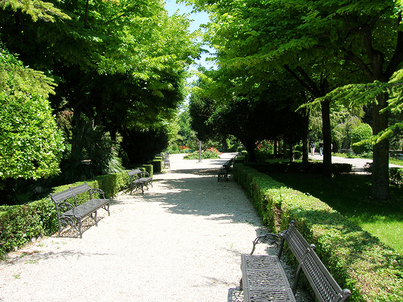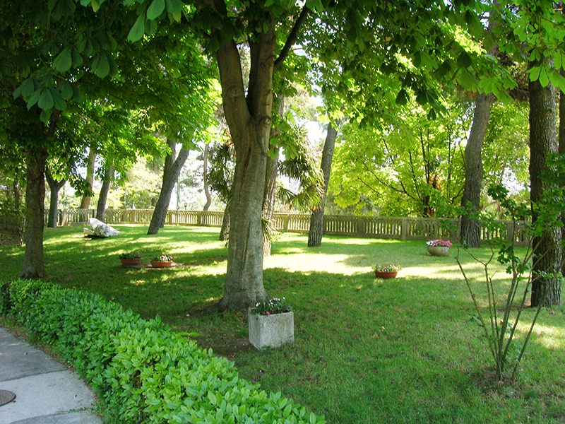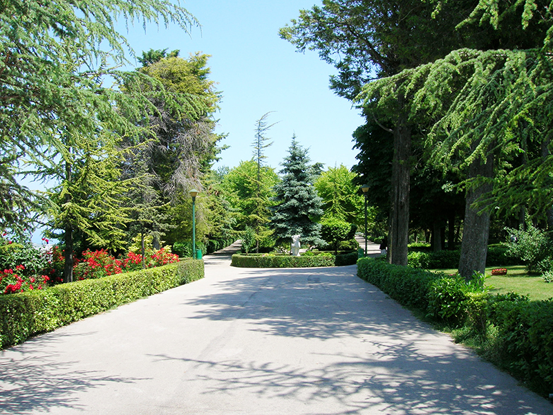Esteso parco-giardino all'italiana, fu riorganizzato ai primi di questo secolo su base architettonica con geometrici tracciati; si stende su due aree pianeggianti e sbalzate a terrazze per circa tre ettari, in una posizione ideale, aerea e soleggiata. Lunghi viali asfaltati rigorosamente chiusi al traffico, panchine sparse in ogni dove e boscosità elevata lo rendono adatto ai visitatori di ogni età per un soggiorno quieto e gioioso. L'aria balsamica, profumata da mille fiori, merita di essere respirata a pieni polmoni. E' ampiamente illuminato di notte. All'ingresso due fontane, con due conche abruzzesi, disegnano giochi d'acqua. Via via che ci si inoltra si possono notare prati verdi, aiuole multicolori e viali rettilinei, adorni di siepi di bosso con presenza di alberi e piante di numerosissime specie tra cui si ricordano le nordiche (abete bianco, abete rosso, betulle, pino montano, silvestre ecc.) e le mediterranee (palma, pino marittimo, ginepro ecc.).