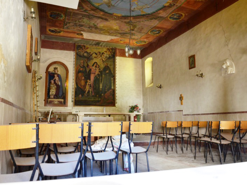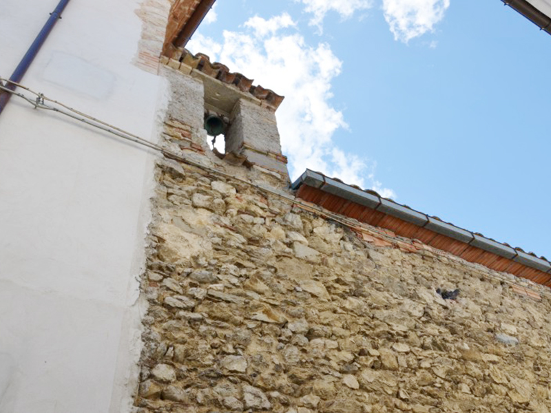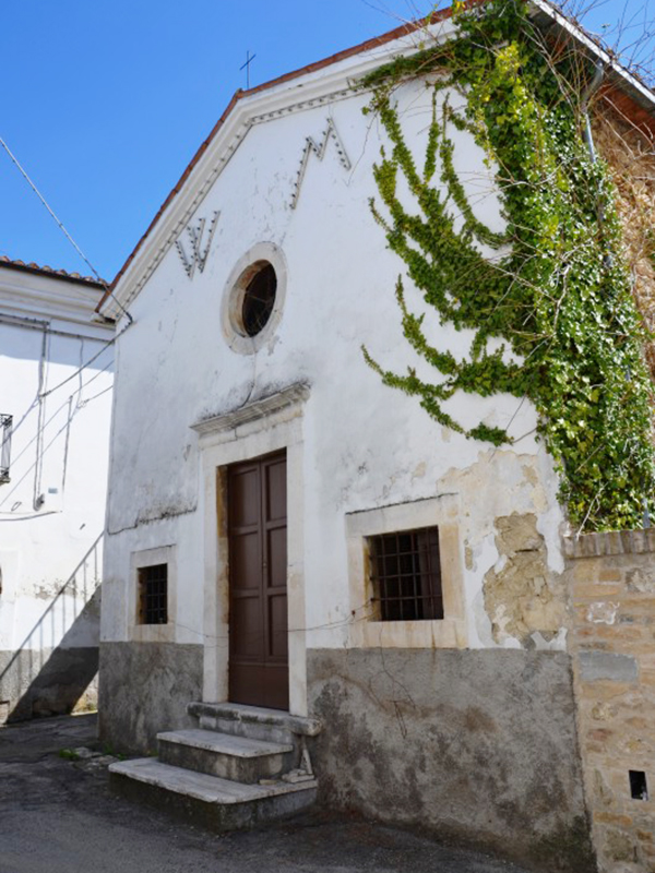 Si tratta di una cappella privata di proprietà della famiglia Petrilli, per molto tempo signori di quei luoghi. Fortemente danneggiata dal terremoto aquilano del 6 aprile 2009, è stata dichiarata inagibile con Ordinanza sindacale n.18 del 19/04/2009 e non ancora riaperta al culto. Ha copertura a capanna e sulla semplice facciata si apre un portale ad architrave piano con mensola, ai lati del quale sono due finestre quadrate incorniciate in pietra come il portale. L’interno è ad aula unica ed il soffitto, seppure deteriorato, è completamente affrescato. Sulla parete dietro l’altare è un grande dipinto e di fianco ad esso, in una nicchia, è custodita la statua della madonna del Soccorso. Dalle finestrelle, in attesa che la chiesa torni ad essere agibile, mani devote spingono quotidianamente verso l’interno lumini votivi. Sul fianco della chiesa è tuttora collocata una passerella in cemento che fino a qualche decennio fa consentiva la comunicazione diretta con il vicino palazzo baronale. A fianco del portone principale di questo è messa in risalto una targa con un simbolo esoterico vicino alla sigla A.M.O.R.C. (Antiquus Mysticusque Ordo Rosae Crucis).