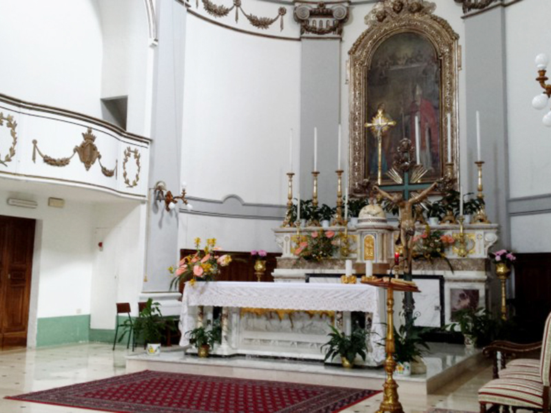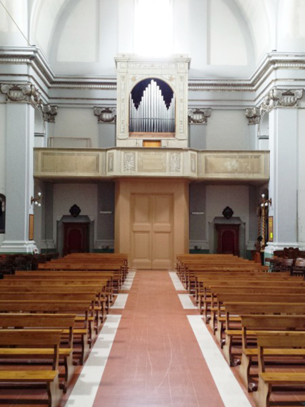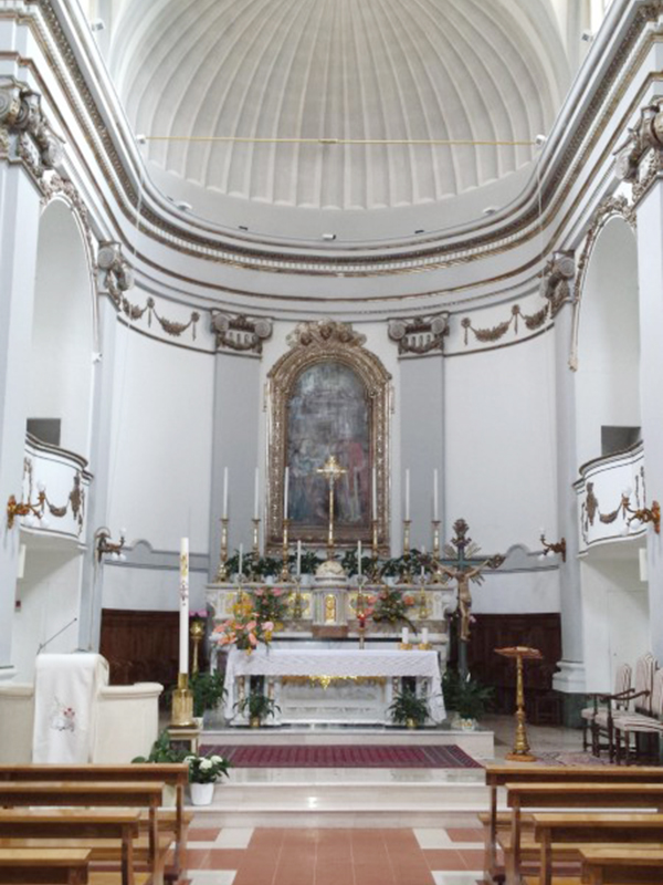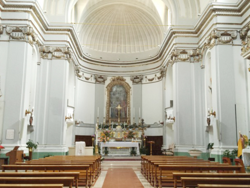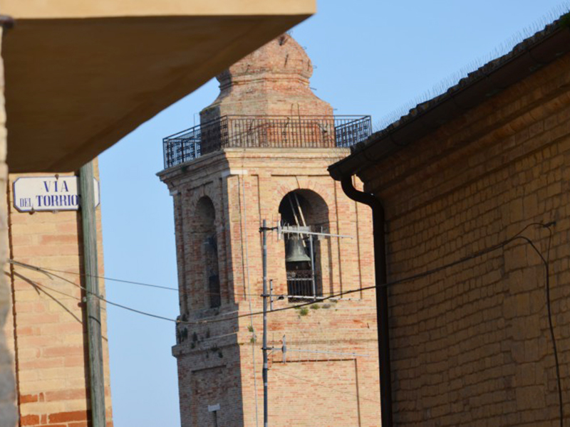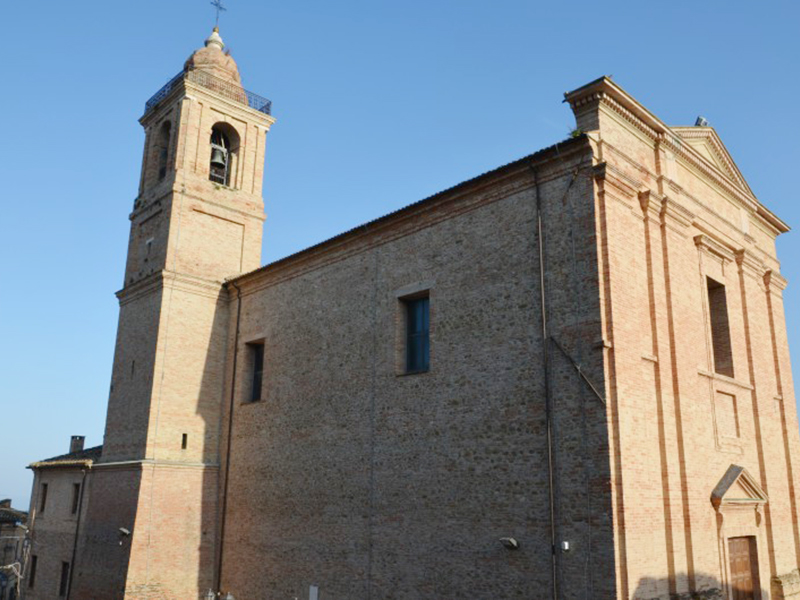 E' la chiesa parrocchiale, la cui costruzione iniziò, su una preesistente chiesa del Cinquecento, nel 1795 a cura dell'architetto, svizzero ma vissuto nelle Marche, Pietro Maggi (1756-1816) e terminò nel 1816 a cura di suo figlio Giacinto. E' realizzata in laterizio e sulla facciata scandita da paraste si apre un semplice portale ad architrave piano incorniciato in laterizio e sormontato da trapezio; più in alto si apre un finestrone rettangolare. La facciata, a coronamento orizzontale, culmina con una robusta trabeazione. Sul fianco destro della chiesa poggia una torre campanaria, anch'essa in laterizio, a base quadrata, sormontata da una piccola cupola a base ottagonale. L'ultimo suo restauro risale al 1995, quando l'intervento si rese necessario per una situazione complessiva di degrado, ma soprattutto per via delle coperture divenute fatiscenti e per via di varie lesioni sulle murature. All'interno, ad aula unica absidata, si possono ammirare le cinquecentesca statua della Madonna del Suffragio, in legno dorato, e un organo costruito nel 1833 da Quirino Gènnari e da suo figlio Gaetano di Lanciano (Ch), anche se operanti a Napoli.
