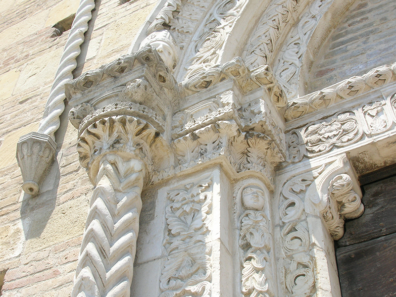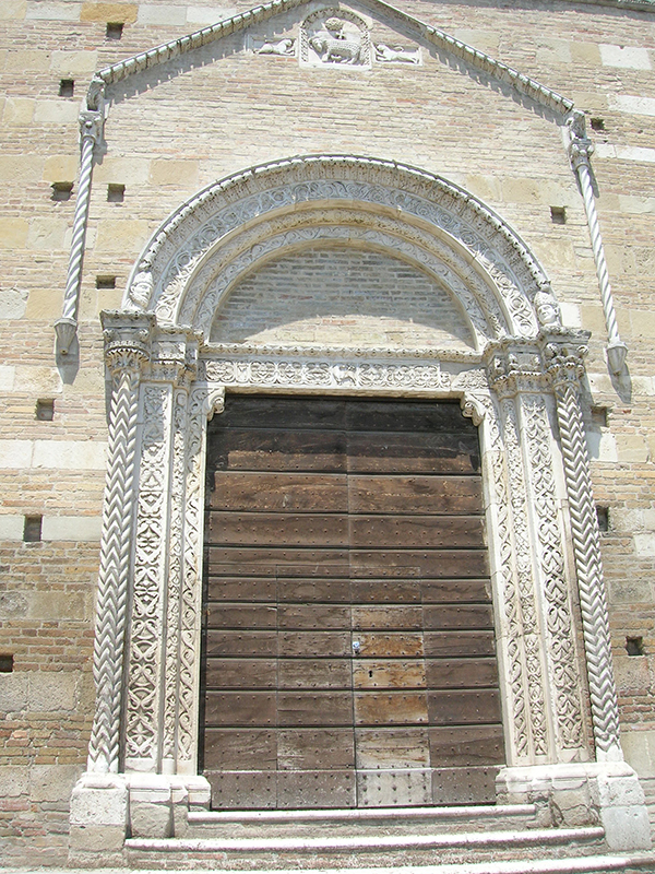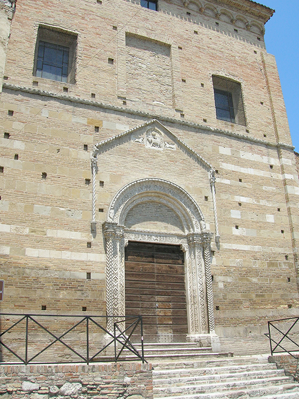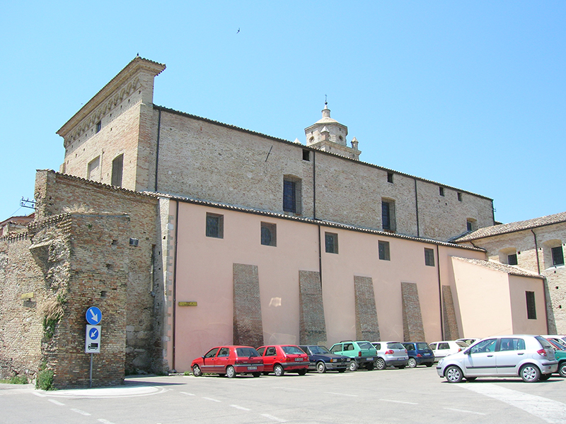 E’ meglio conosciuta come Chiesa di S.Domenico, essendo stata ricostruita per volere dei Padri Domenicani tra il 1298 ed il 1317. L’edificio originario, eretto al posto di una residenza regia appartenuta all'Imperatore Federico II di Svevia di cui si conservano il portale gotico ed una bifora, risale al Duecento, ma venne fortemente rimaneggiato nei secoli successivi e completamente ricostruito nel corso del XVI secolo. In facciata, a coronamento piano, si apre uno splendido portale in pietra decorata, analogo a quello presente nella Cattedrale della città. E’ sormontato da un lunettone che viene arricchito al vertice da una formella con la raffigurazione dell’Agnus Dei fiancheggiato da due leonesse. Al di sopra dell’Agnello è insolitamente raffigurata la Rosa di Sion, simile al sigillo dei Cavalieri Templari. Alla parte posteriore della parete destra si poggia un tozzo campanile a base quadrata. All’interno, lungo la navata si aprono otto cappelle con altari ornate di stucchi e di tele di età barocca. Quelle a destra, entrando, sono la Cappella di S.Liborio, la Cappella Brigotti, la Cappella del SS.Nome di Gesù e la Cappella Forcella. Sul lato sinistro sono la Cappella Tribuni, la Cappella de Paulo, la Cappella di S.Tommaso d'Aquino e la Cappella dell'Annunciazione. L'organo sulla cantoria è del 1716. Sul soffitto è un'opera realizzata nel 1724 dall'atriano Giovan Battista Savelli raffigurante la “Gloria di San Domenico”, la cui rappresentazione prospettica regala profondità inaspettate. Il grande dipinto si ispira al soffitto con la “Gloria di Sant'Ignazio”, realizzato da Andrea Pozzo (1642-1709) in Sant'Ignazio a Roma. L'annesso convento domenicano venne trasformato nell'Ottocento in complesso industriale e utilizzato per la fabbrica di liquirizie.
