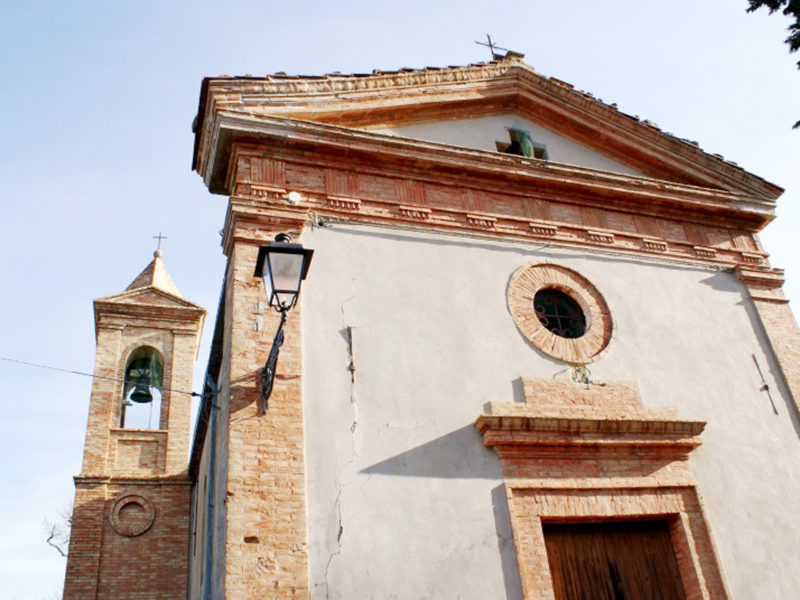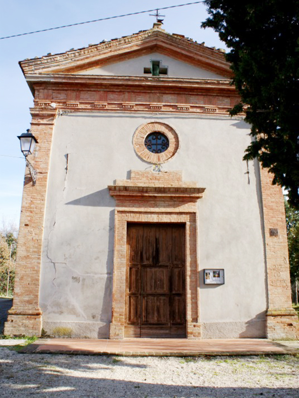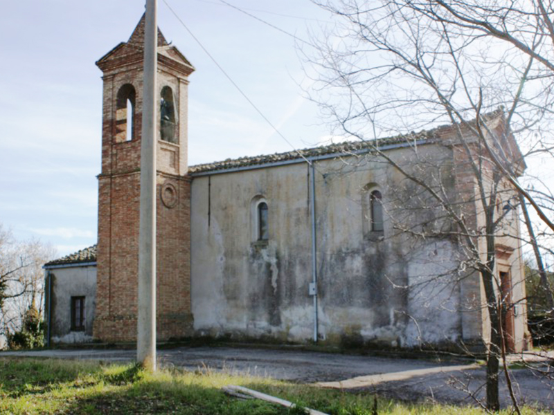 Risalente probabilmente al Cinquecento, anche se l’edificio giunto fino a noi è probabilmente molto diverso da quello originario per via di una radicale ristrutturazione avvenuta nell’Ottocento. La chiesa è con copertura a capanna; la facciata presenta nella parte superiore un frontone rastremato in laterizio che reca al centro una croce greca e nella parte inferiore, appena sopra il portale, un oculo. Appena sotto questo, una mattonella in ceramica ricorda un recente restauro. Alla parte posteriore della parete sinistra è appoggiato uno svettante campanile in laterizio che termina con una guglia e reca una campana. All’interno, di aspetto sobrio ed essenziale, è incastonata alla parete la placca con la Croce delle Indulgenze concessa da Papa Leone XIII nel 1901. Sulla parte centrale si legge “Iesus Christus Deus Homo Vivit Regnat Imperat MCMI” e nel cerchio esterno "Osculantibus crucem hanc in ecclesia positam et recitantibus Pater indulgentia 200 dierum semel in diem".