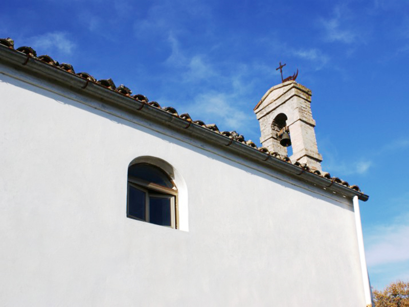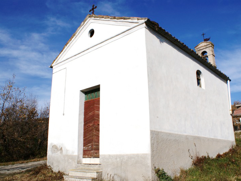 Un tempo collocata nella parte più alta del paese, divenuta ormai vetusta nel 1929 fu abbattuta e ricostruita dove la vediamo oggi. Si presenta come semplice struttura con copertura a capanna la cui facciata è ingentilita da un accenno di frontone. La luminosità all’interno è assicurata da due alte finestre con arco a tutto sesto sulle pareti lunghe e da un piccolo occhio al centro del frontone. Un piccolo campanile a vela con una campana è posizionato sulla parte posteriore del tetto.