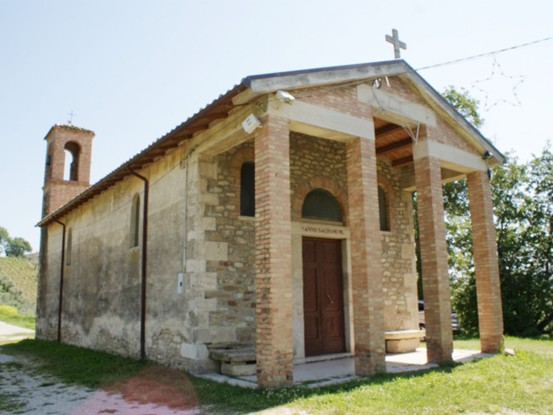 Nota fin dal 1300 come parrocchiale di Cerreto consacrata a S. Maria, in seguito fu aggiunta la venerazione a S. Rustico ed oggi è dedicata solo a quest'ultimo Santo. Prima dell’importante restauro eseguito nel 1950, essa era quasi completamente in legno e nella sua ricostruzione sono stati forse riutilizzati alcuni materiali provenienti da un’antica costruzione che si trovava nei pressi. Oggi si presenta con copertura a capanna ed il semplice portale in pietra, sormontato da un lunetta, è preceduto da un portichetto. Alla parete posteriore è appoggiata una torre campanaria in laterizio sulla cui sommità trovano posto due campane.