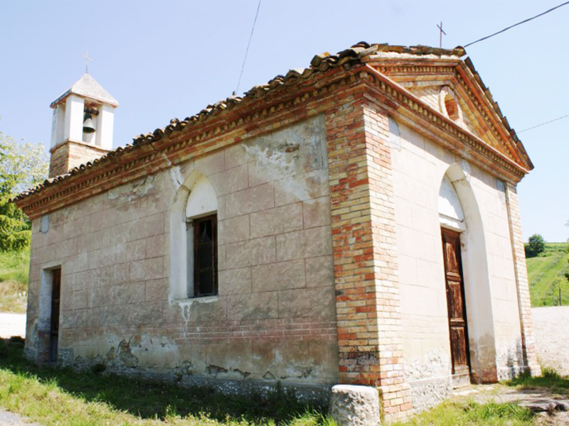 In questa zona la devozione al Santo era nota già nel Seicento, ma la chiesetta è stata ricostruita nel 1947, e sulla epigrafe che si trova nella lunetta a sesto acuto al di sopra del semplice portale si legge: “Chiesa costruita dal popolo e amministrata dai seguenti benefattori: Di Francesco Savino, Pompa Francesco, Fagioli Raffaele, Laurini Nicola, Sperandii Giovanni. Sorrenti 8 – IX – 1947”. L’edificio presenta copertura a capanna e la facciata ha nella sua parte superiore un frontone rastremato in laterizio al cui centro trova posto un finestrone rotondo incorniciato in laterizio. Alla sua parete posteriore è appoggiato un piccolo campanile a guglia che sorregge una campana. L’interno è costituito da un’unica auletta priva di abside. In una nicchia nella parete di fronte al portale trova posto una statua della Madonna, ai cui piedi si trova un altare in laterizio e travertino in cui l’officiante deve dare le spalle ai fedeli. In una delle pareti laterali trova posto in un’altra nicchia la statua di S.Savino.