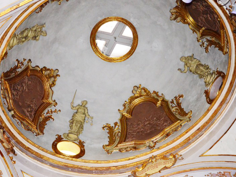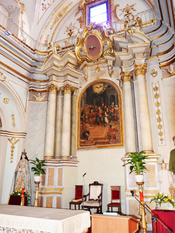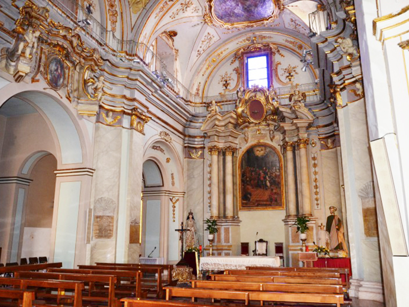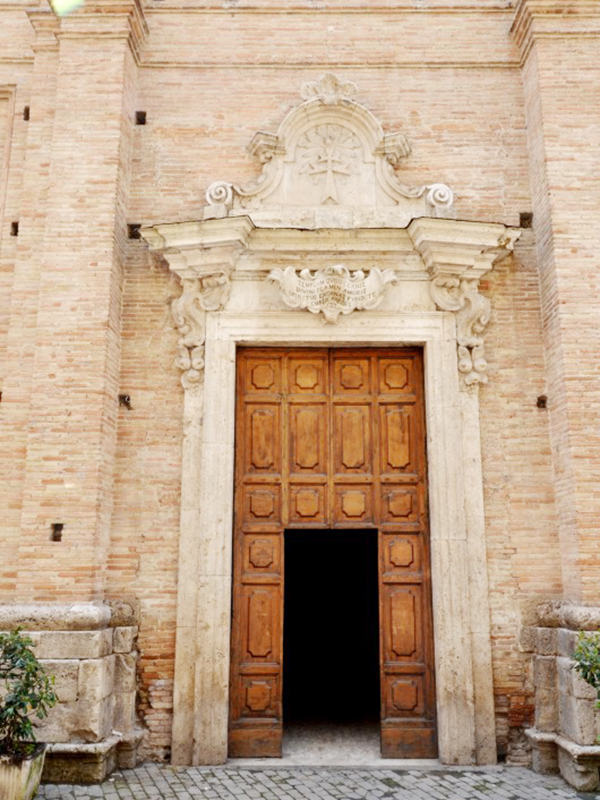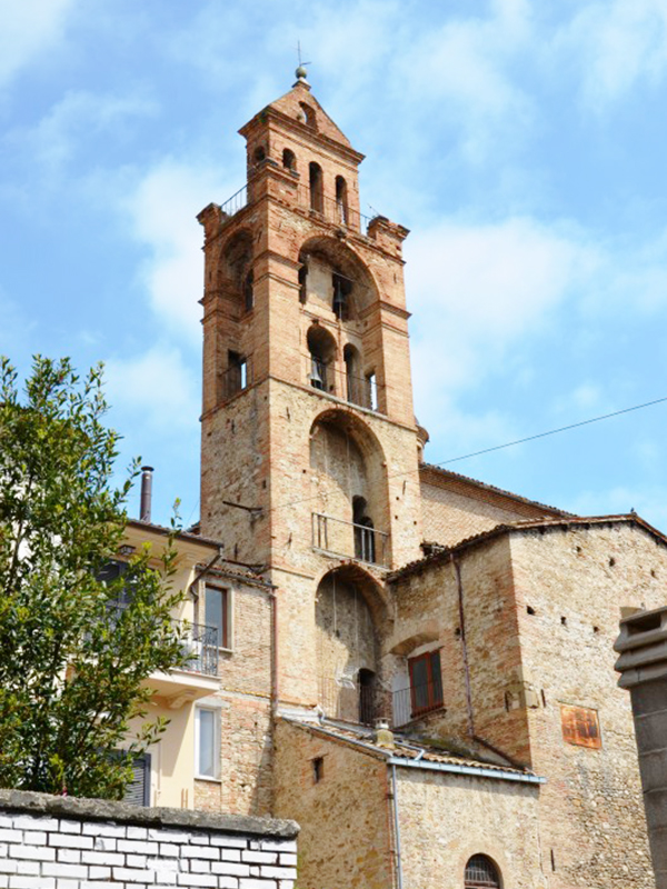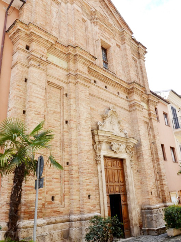 Si hanno notizie già dal 1277, ma le sue origini si pensa che siano ben più antiche. Oggi la chiesa ci appare nelle vesti della ricostruzione effettuata tra la fine del Seicento e la prima metà del secolo successivo, in occasione della quale venne data alla chiesa l'attuale impronta decisamente barocca. E' completamente in laterizio e sulla sua facciata coronata a timpano si aprono un bel portale in travertino ed un finestrone centrale. Incorniciate al di sopra del portale sono una Doppia Croce costantiniana di Gerusalemme, simbolo della confraternita aprutina e segno di privilegio pontificio, ed una colomba ad ali spiegate, emblema dello Spirito Santo. Sul suo lato destro, inglobato nelle mura della canonica, è uno slanciato campanile a vela, anch'esso in laterizio. L'interno è a tre navate, di cui quella centrale decisamente più grande delle altre due. La chiesa è sormontata da una cupoletta ellittica ed il suo interno è abbellito da stucchi, da dipinti sei-settecenteschi e di altari. In particolare, l'altare maggiore è sormontato da un Crocifisso ligneo trecentesco. Sopra l’ingresso principale, in una cantoria lignea sorretta da mensole e da bussola, con parapetto mistilineo, è un organo a canne costruito nel 1864 dall’ascolano Vincenzo Paci. Gli ultimi lavori di restauro ed ammodernamento della chiesa vennero effettuati tra il 1966 ed il 1969.
